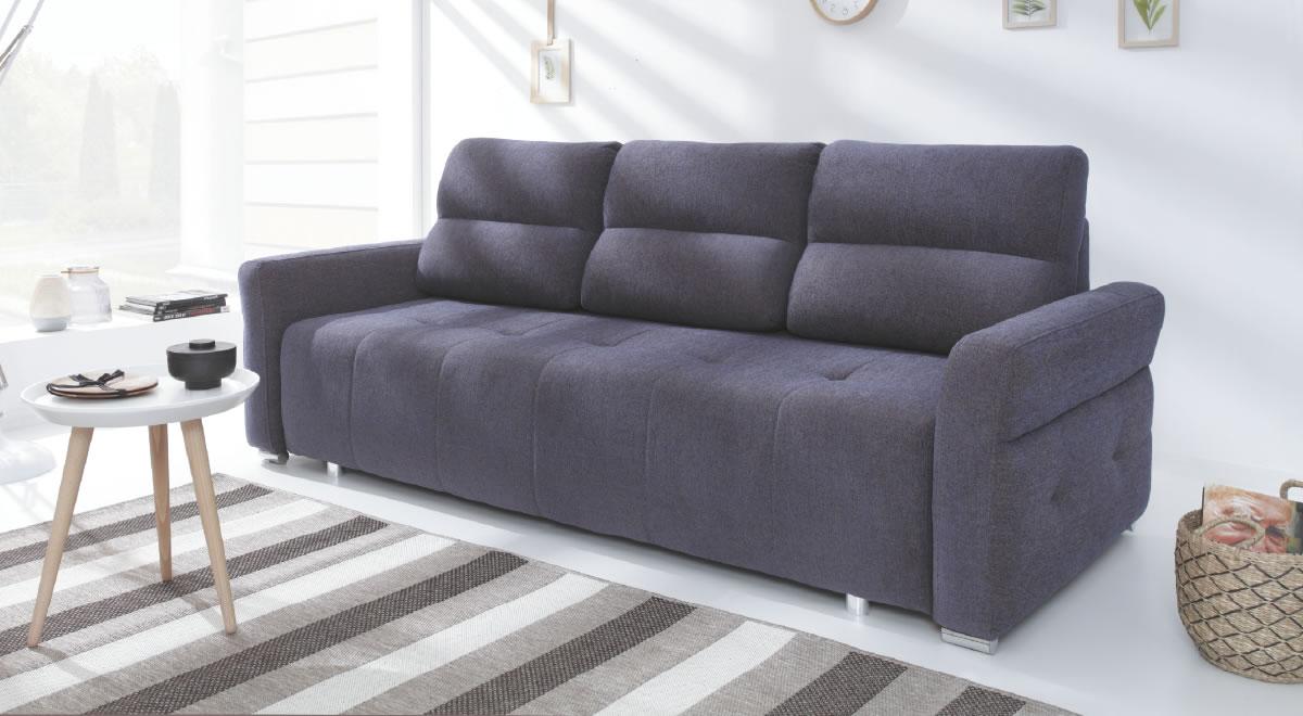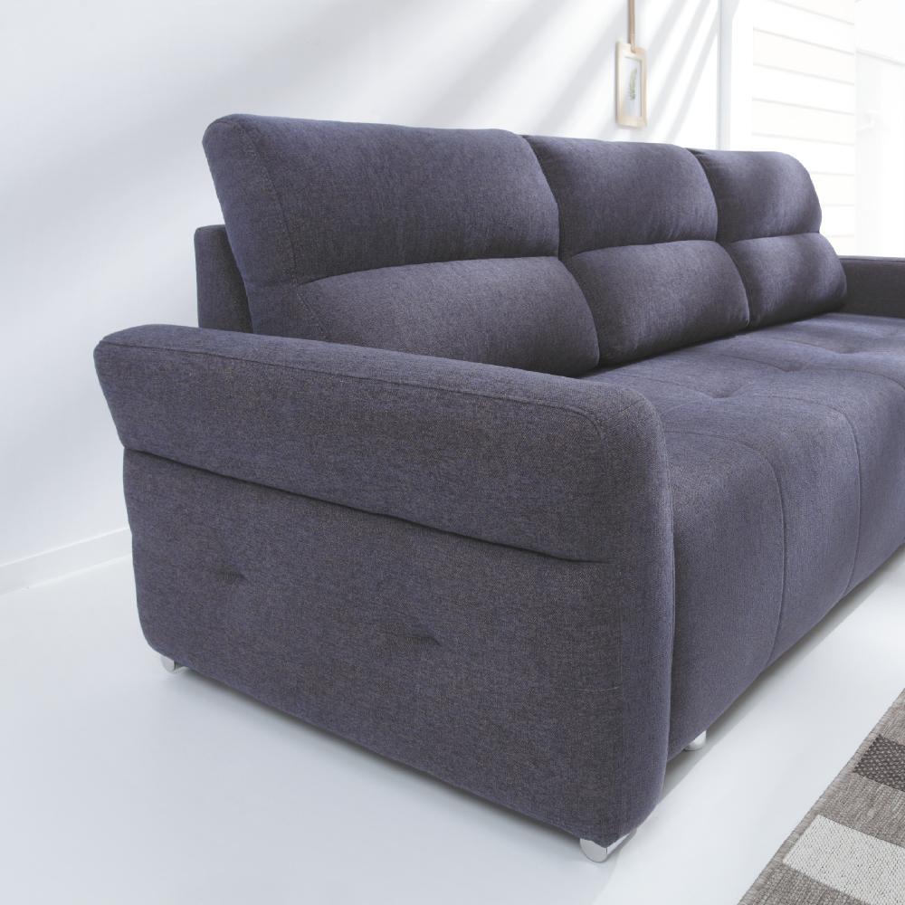 Širok sedež in mehke blazine zagotavljajo prijetno sedenje, raztegljiv mehanizem pa omogoča hitro preoblikovanje v udobno ležišče. Elegantne linije, dekorativno prešitje in moderne, kovinske nogice prostoru dodajo prefinjen videz. Rokonasloni ostanejo fiksni tudi ob uporabi ležišča.
