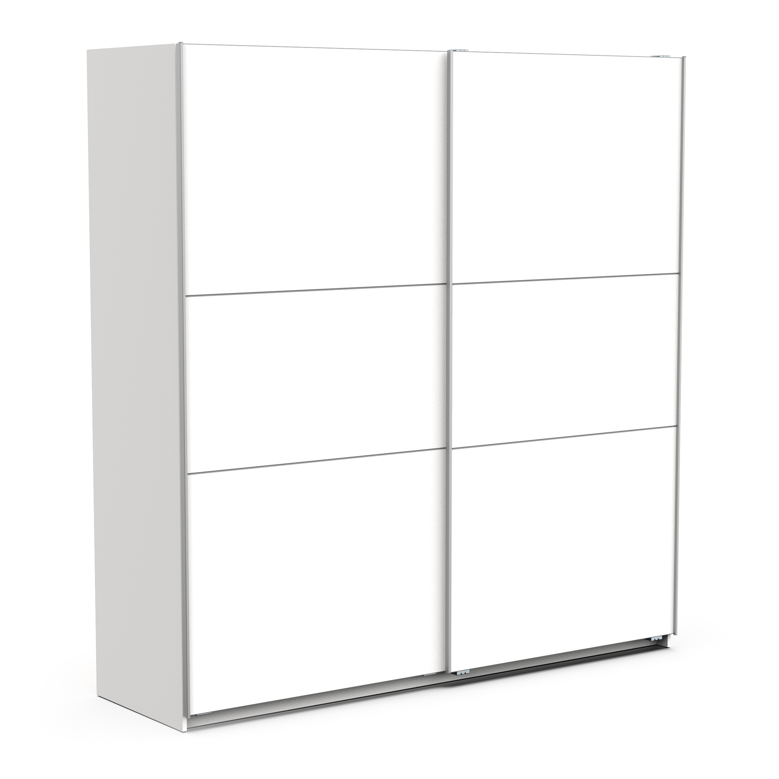 Široka garderobna omara z drsnimi vrati, na voljo v mat beli ali sonoma hrast barvi. Garderobna omara je v celoti izdelana iz visokokakovostnega iverala, oblečenega v melamin, s ploščami debeline 1,2 ter 1,5 cm.