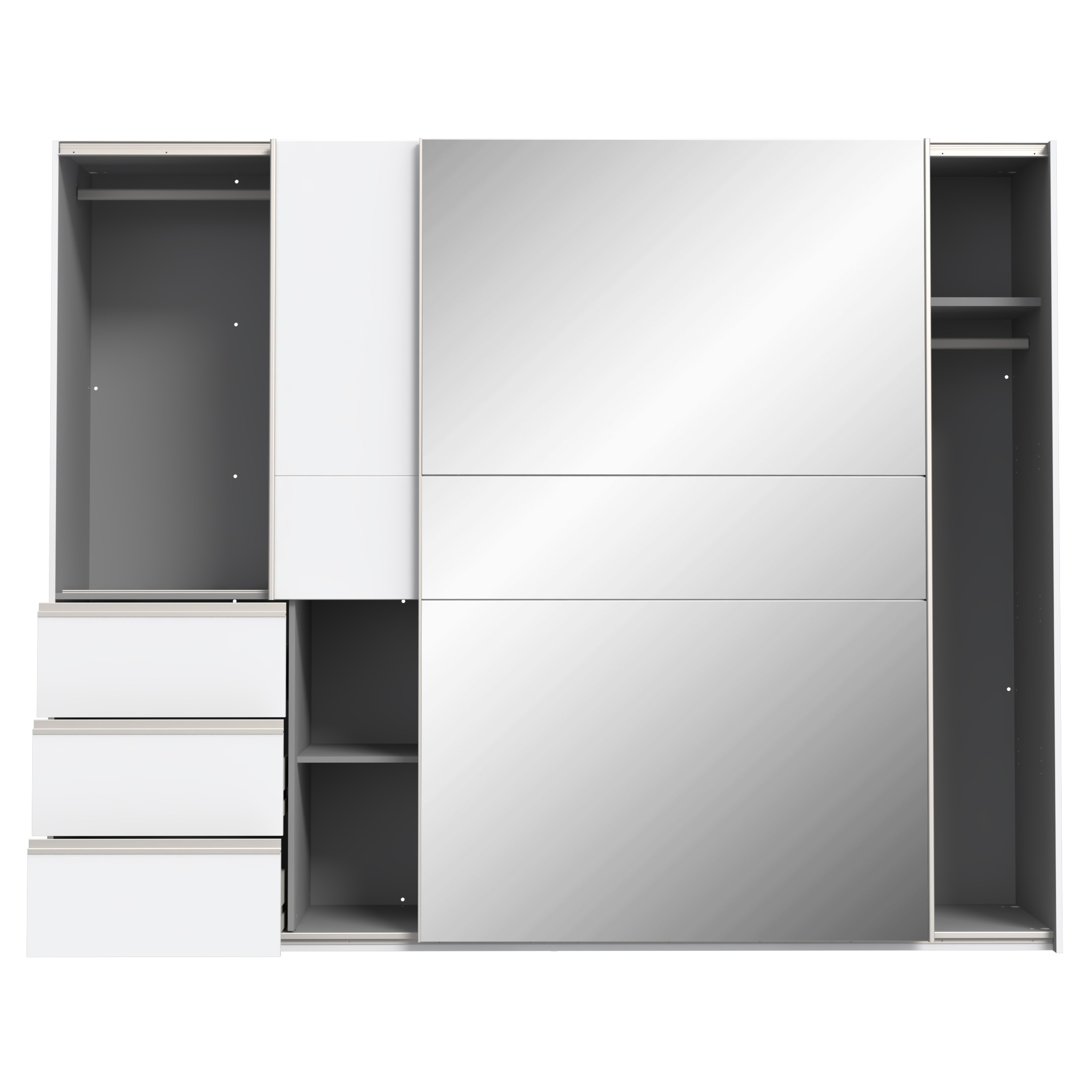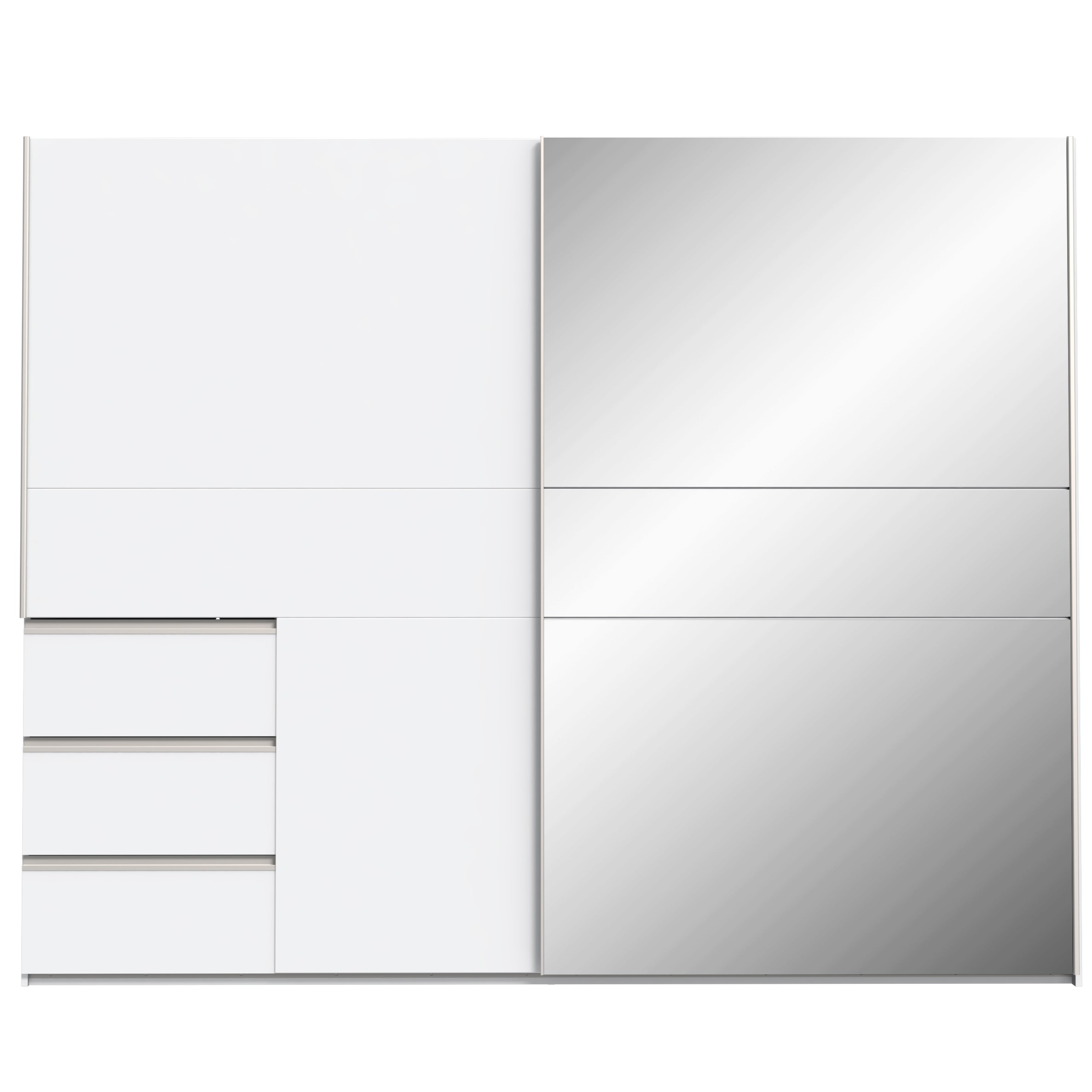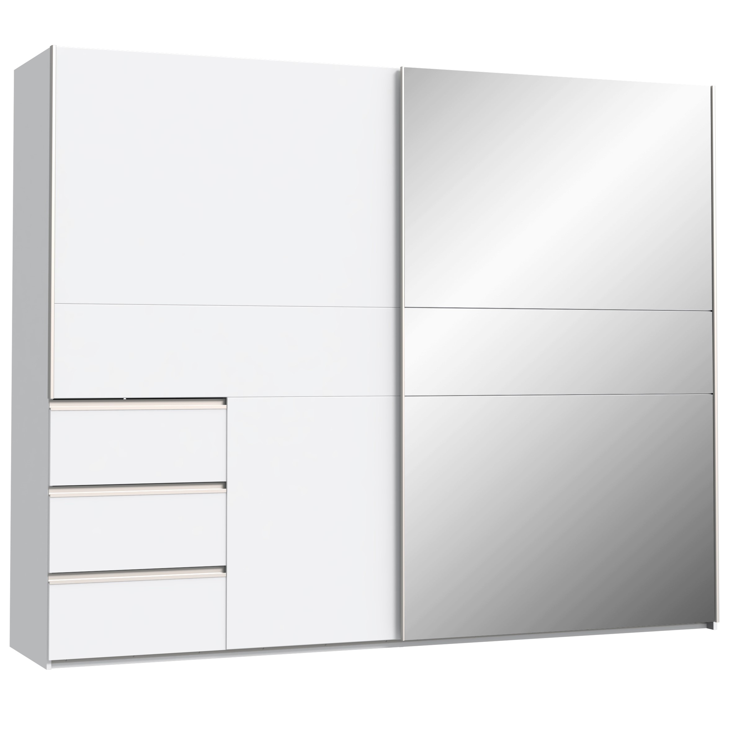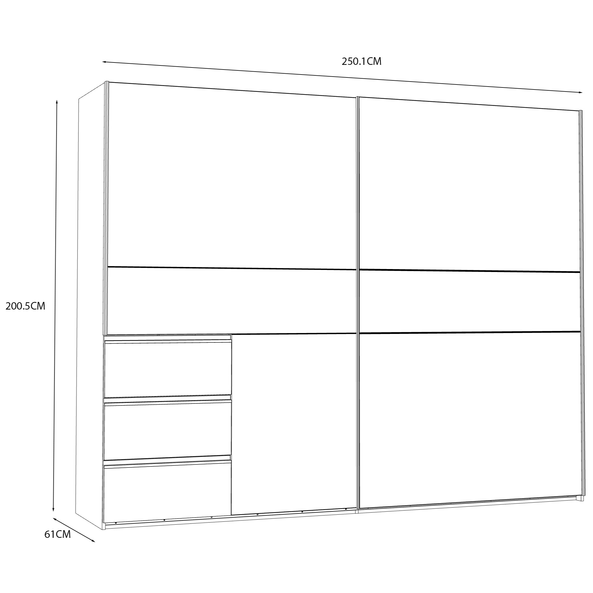 Široka dvodelna garderobna omara z drsnimi vrati, primerna za spalnice, predsobe, dnevne sobe… Omara je na voljo v dveh različnih barvnih varijantah.