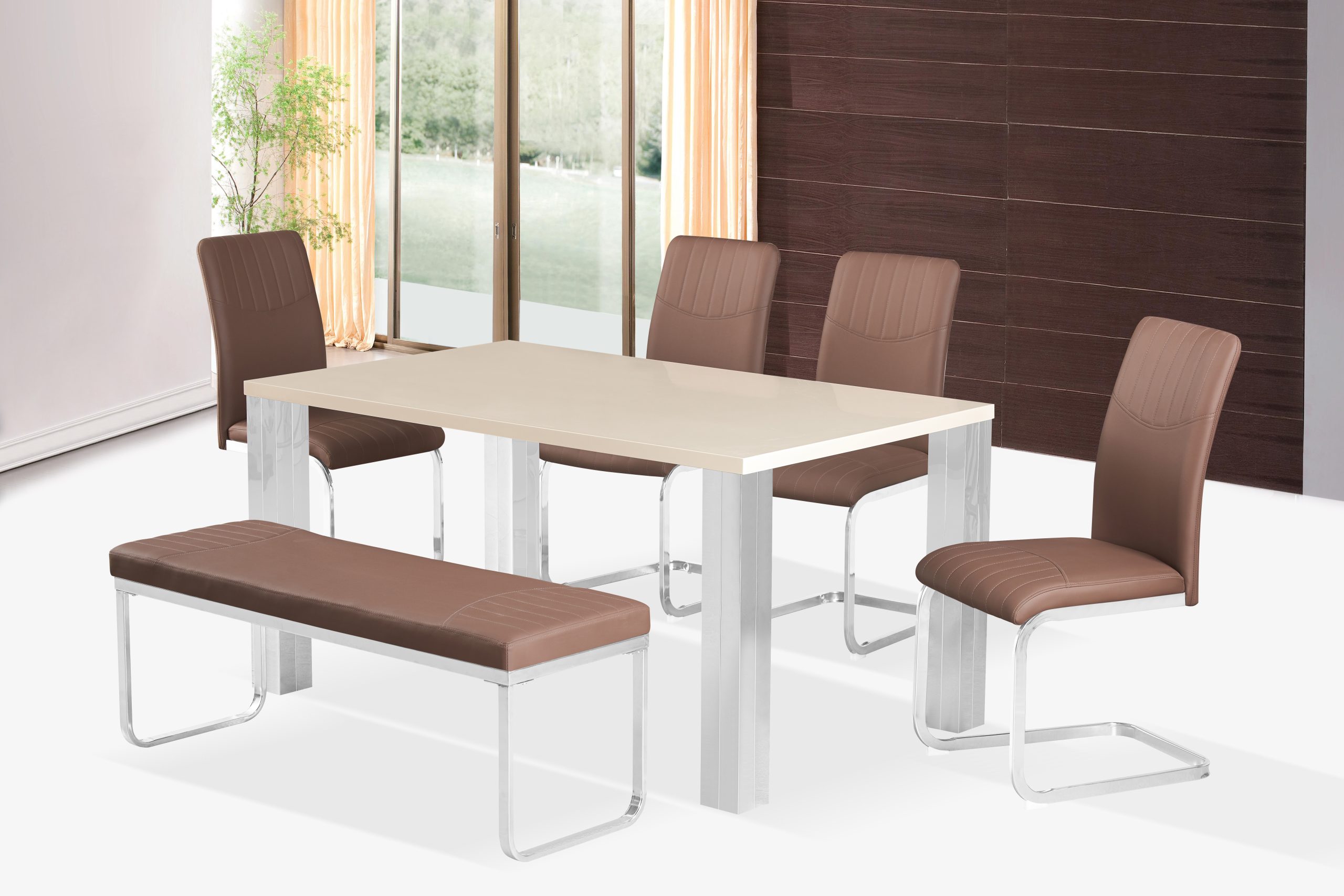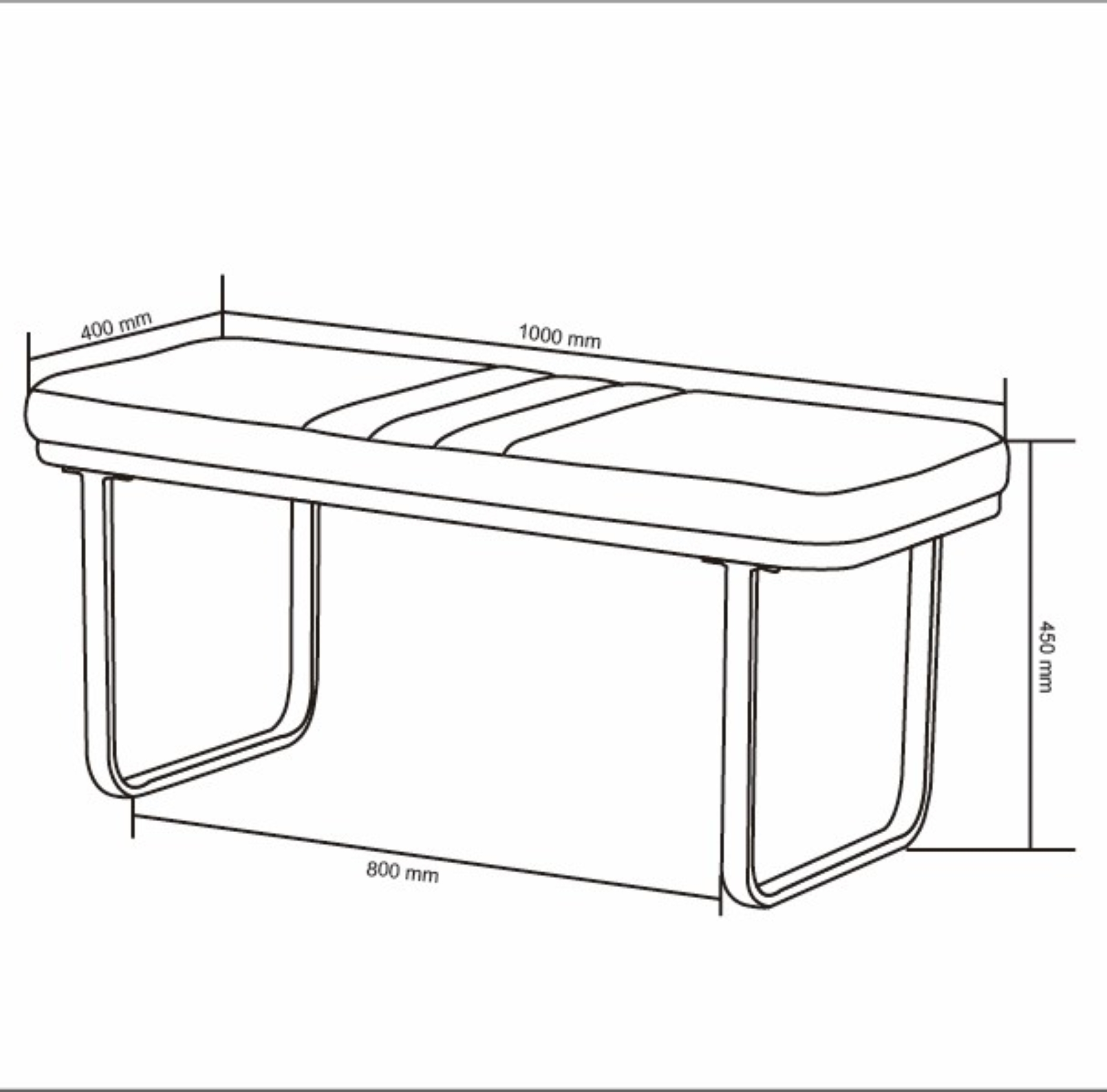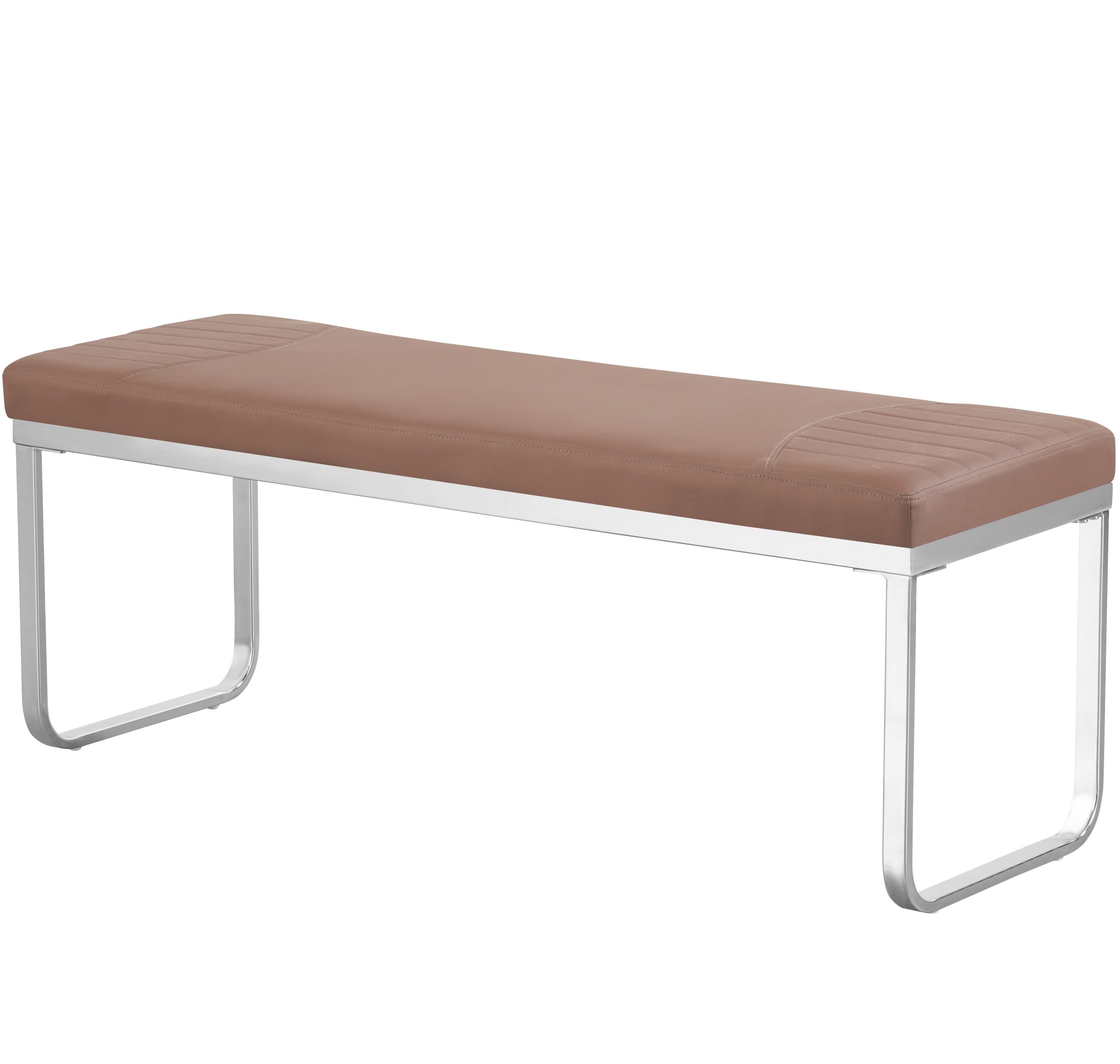 Oblazinjen sedež stoji na stabilnem podnožju v slogu sani iz kromirane kovine, ki zagotavlja stabilnost in sodoben videz. Klop se lahko kombinira z jedilnimi mizami, postavi ob vznožje postelje ali pa urablja kot udoben sedež na hodniku, ta vsestranska klop je elegantna in praktična.