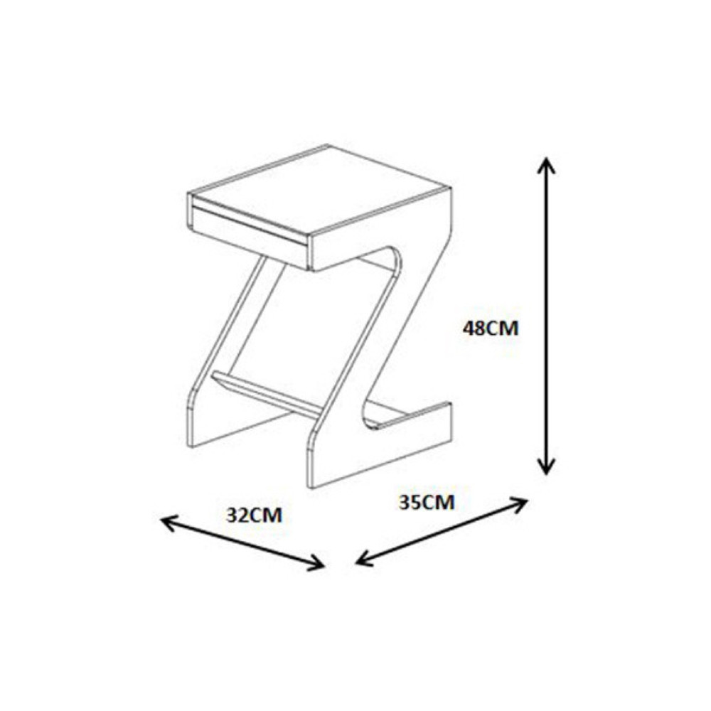 Preprosta multifunkcijska klubska miza, ki bo odlično popestrila vaš dom. Mizica je s svojo razgibano obliko, podobno črki z, vsestransko uporabna. Narejena je iz lesa, obarvanega v belo barvo. Na vrhu ima ploščo iz kaljenega stekla, debeline 0,5 cm v črni barvi. Mizica ima tudi manjši predal, pod njem pa polico, na katero lahko odložite časopise, revije itd. Zaradi njene posebne oblike, jo lahko tudi enostavno približate vašemu kavču, medtem ko udobno ležite. Maksimalna obremenitev mize je 15 kg.