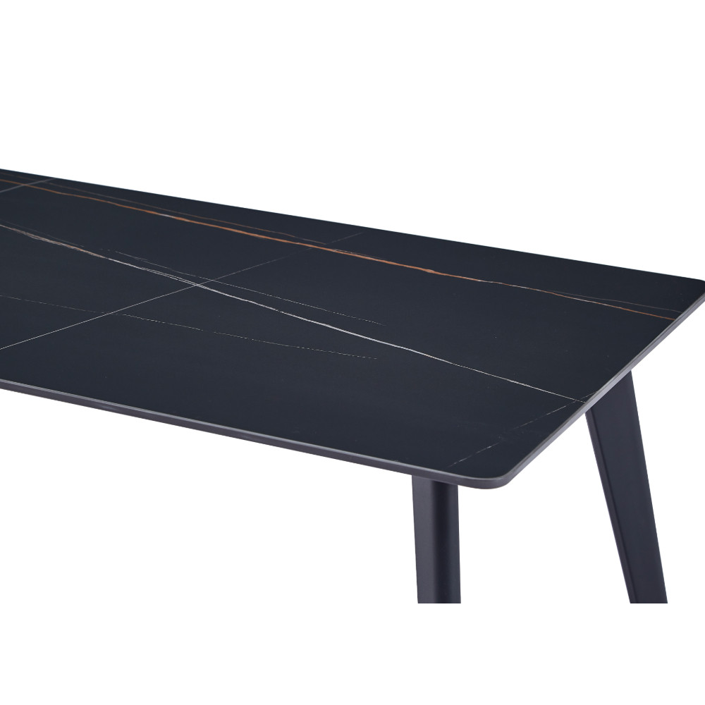 Praktična klubska miza, na voljo v Lauren mat črni barvi s prekrasnim vzorcem marmorja. Plošča mize je izdelana iz sintranega kamna in je debela 12 mm. Sintrani kamen je narejen iz kombinacije naravnega kamna v različnih barvah in ima več prednosti pred navadno keramiko. Je močnejši od velikih keramičnih plošč in se ne razbije zlahka, v primerjavi s ploščami iz naravnega granita pa je tudi naravno vodoodporen. Prav tako je okolju prijaznejši od kemično obdelanih kremenčevih plošč. Podpora plošče je narejena iz MDF materiala. Noge so narejene iz kovinskih cevi in za boljšo zaščito prašno lakirane v črno barvo. Maksimalna nosilnost mize je 120 kg.