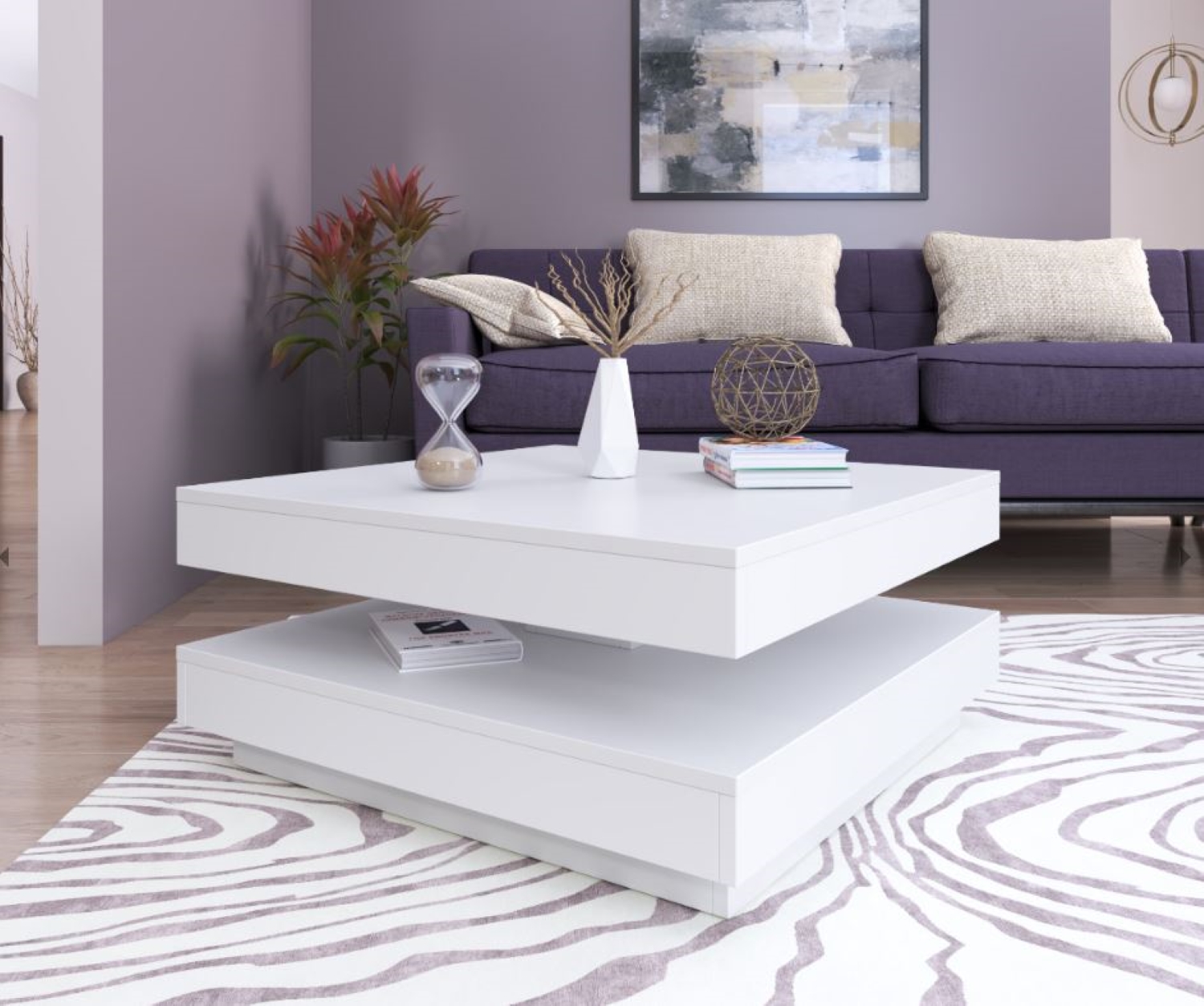Klubska mizica z vrtljivo mizno ploščo, na voljo v popolnoma beli barvi. S svojim moderno obliko ter bo v vašo notranjost vnesla tako zanimiv dizajn in osebnost.