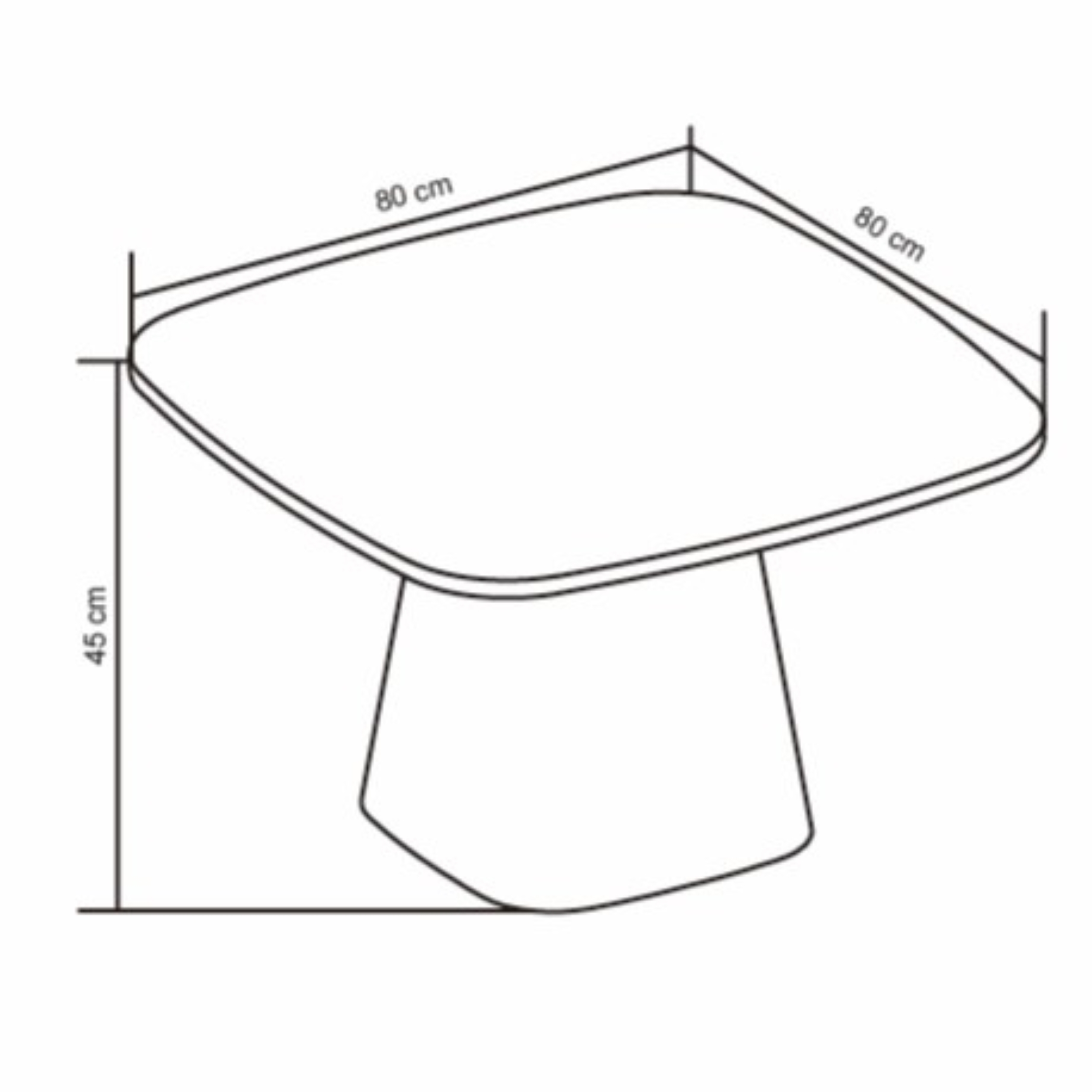 Velika klubska miza, z zanimivo kombinacijo bele keramike na podnožju v imitaciji lesa. Kvadratna mizna plošča meri 80×80 cm, s prijetno zaobljenimi vogali za mehkejši videz. Narejena je iz 9 mm debele plasti keramike v snežno beli barvi na 37 mm debeli podlagi iz MDF materijala.