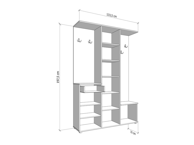 Dimenzija:   133,5 × 33 × 197,5 cm