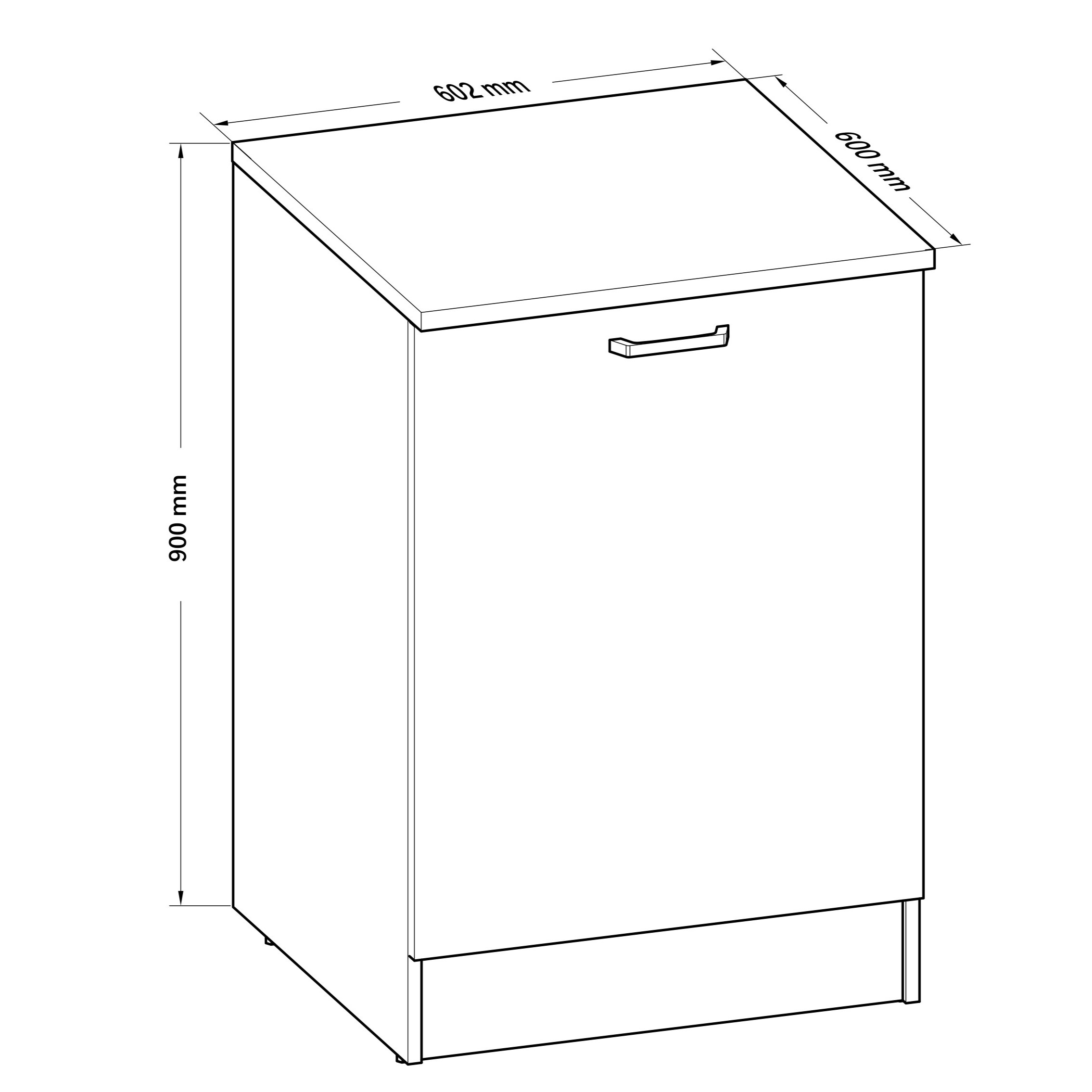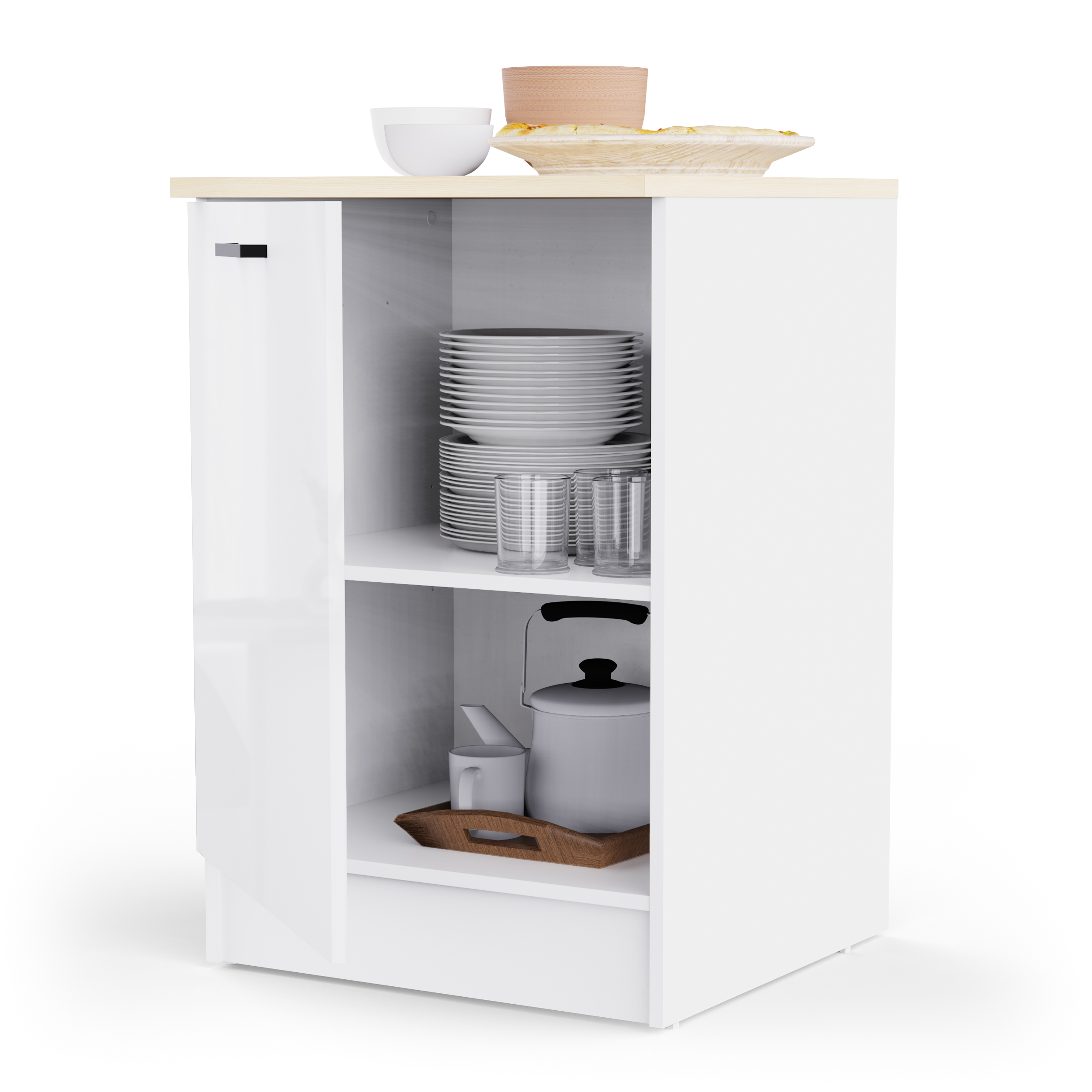 Za enojnimi vrati na tečajih ima kabinet eno nastavljivo polico, ki jo je mogoče nastaviti na tri različne višine. Z uporabnimi dimenzijami širine 57×50 cm omogoča shranjevanje tudi večjih predmetov, kot so sklede, lonci ali manjši gospodinjski aparati.