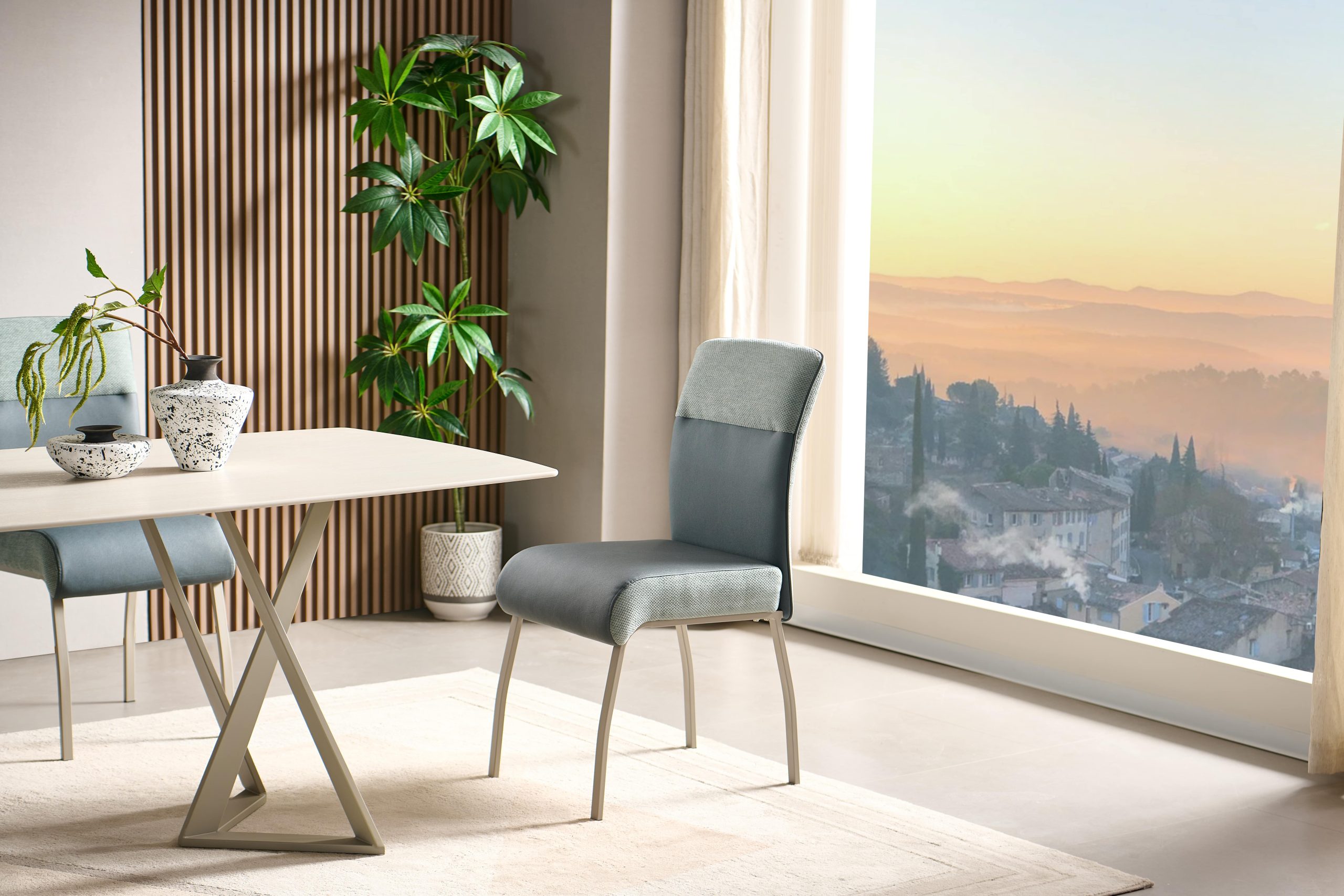 Kombinacija praktičnih prednosti keramike in vizualno osupljivega kovinskega okvirja uravnoteži estetiko in funkcionalnost. Primerna je za notranjost, kjer je potreben privlačen osrednji element, in se dobro hkrati dobro obnese tudi trpežna in enostavna površina za jedilnico.