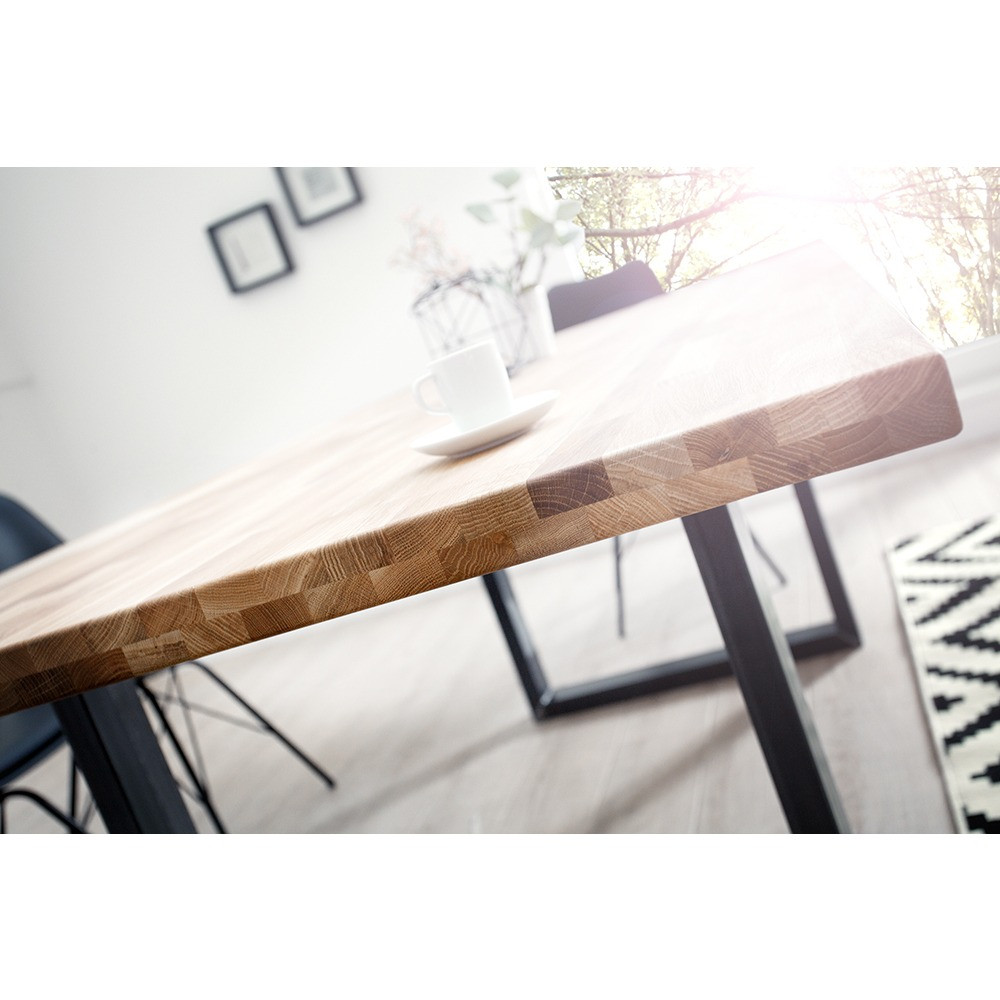 Naravna hrastova barva zgornjega dela nudi organski videz ter se brezhibno zlije z različnimi notranjimi dizajni, ne glede na to, ali se vaš dom nagiba k sodobnemu, rustikalnemu ali industrijskemu notranjemu slogu. Hrastov les prinaša toplino, teksturo in občutek povezanosti z zunanjim prostorom, medtem ko industrijske kovinske noge dodajo kanček modernosti in solidnosti