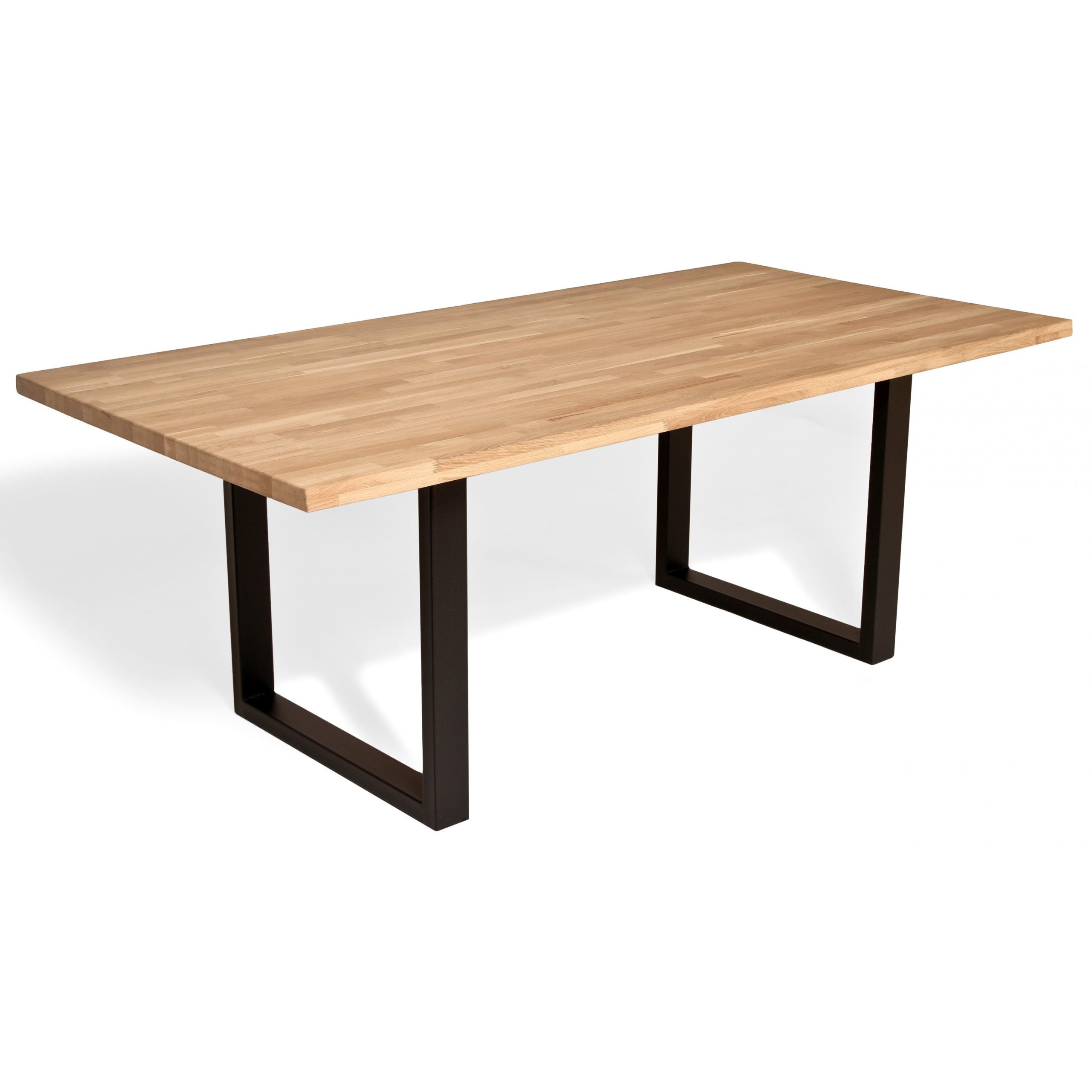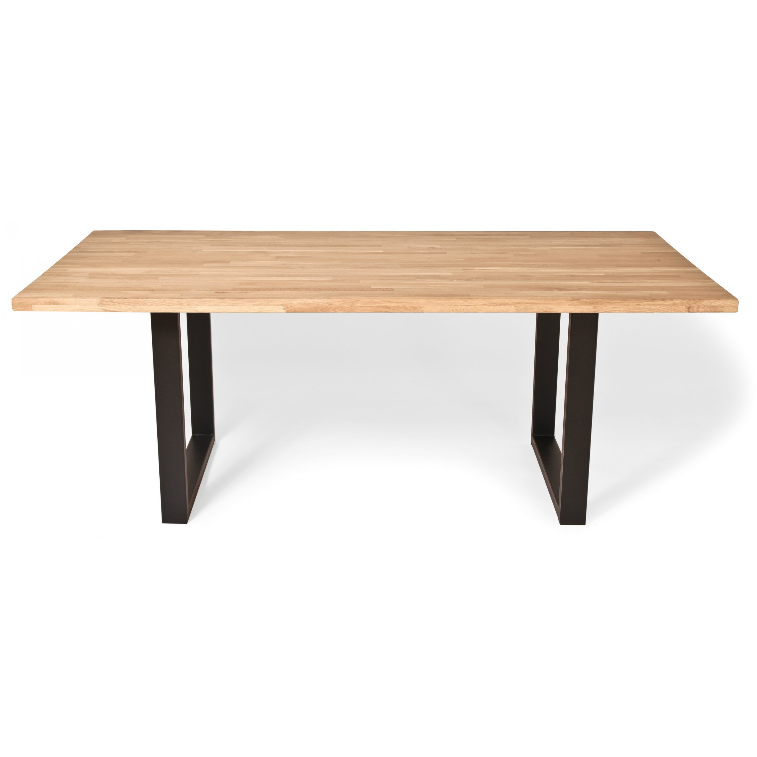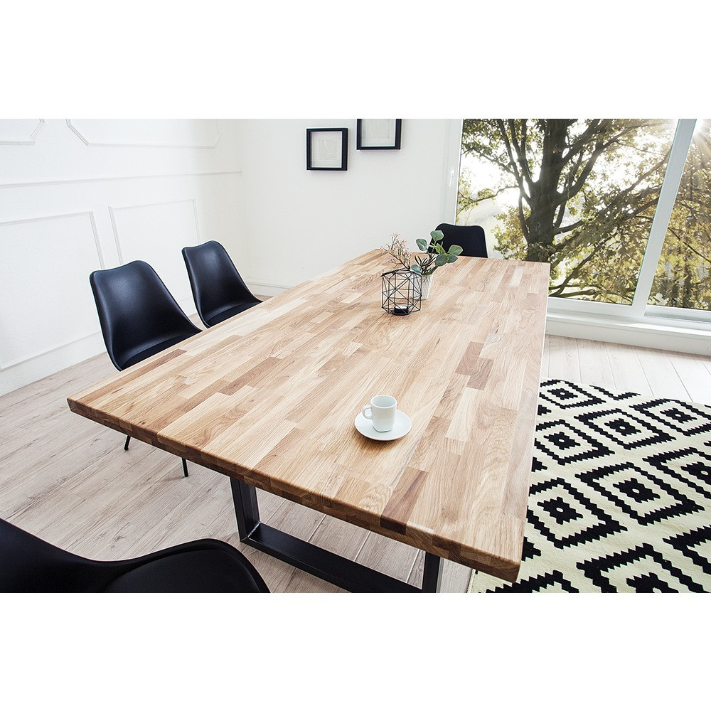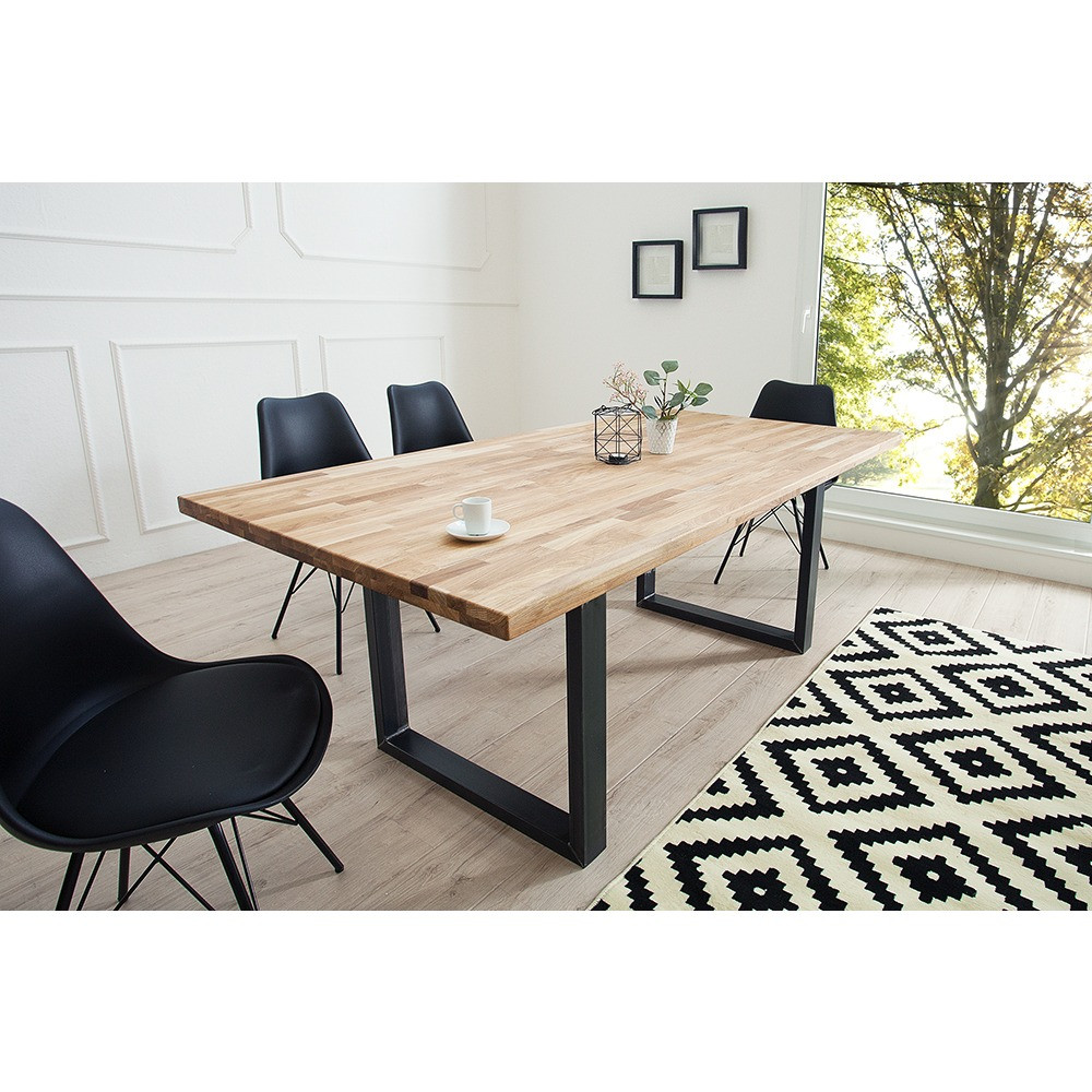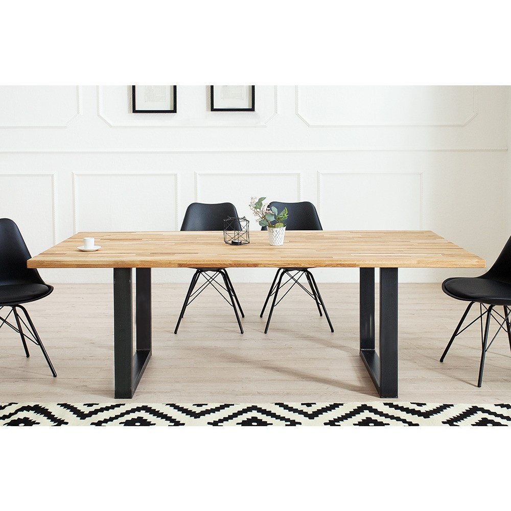 Predstavljamo veliko, elegantno jedilno mizo, ki združuje visokokakovosten, masivni hrastov les z industrijsko trdnostjo kovine in ustvari središče vaše jedilnice.