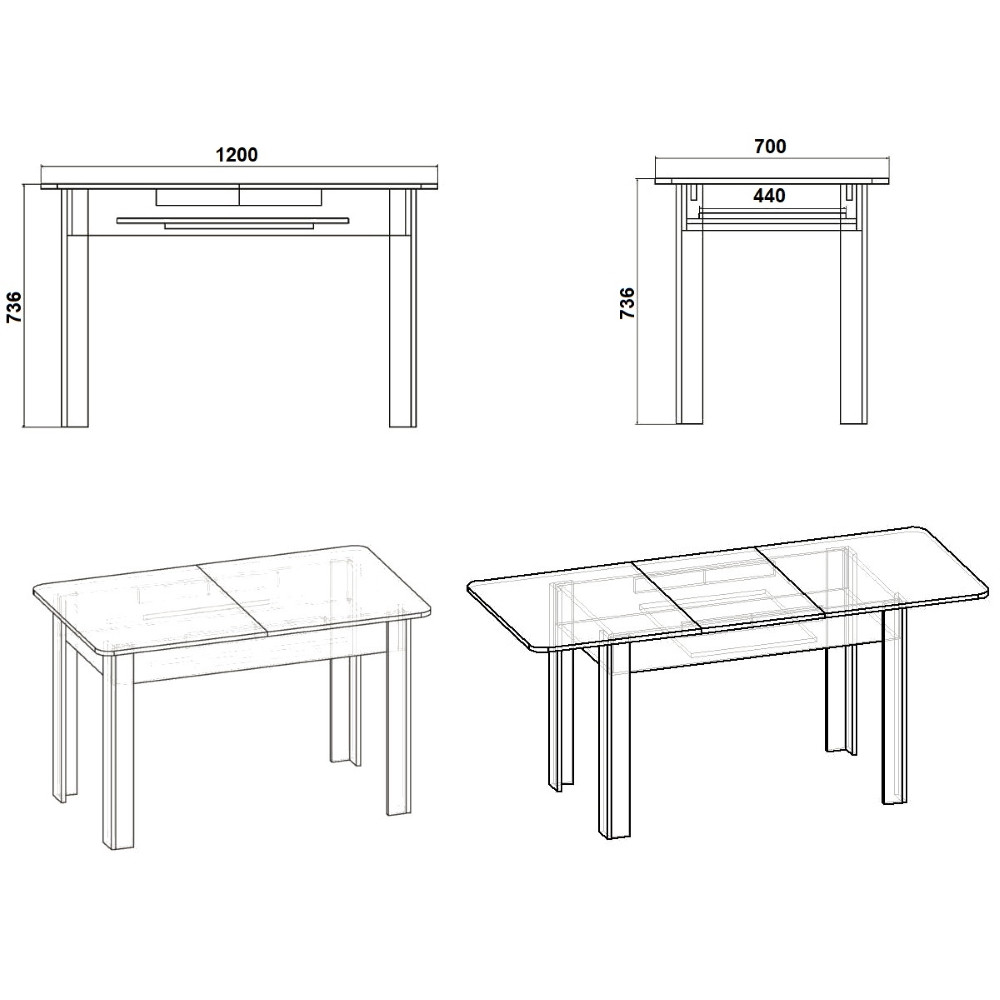 Raztegljiva miza preprostega dizajna, na voljo v beli barvi. Izdelana je iz kakovostnega iverala. Namizje se lahko s preprostim mehanizmom razširi iz 120 cm na 160 cm, z znatnim povečanjem njene uporabne površine.