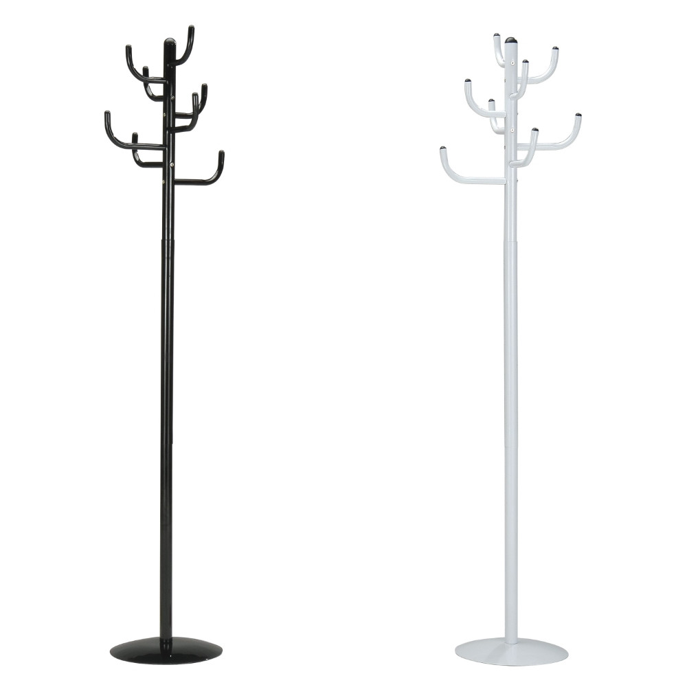Sodoben kovinski obešalnik, no voljo v črni ali v beli barvi, z veliko obešalnimi kljukicami za vaše plašče, klobuke ter druga oblačila in dodatke.