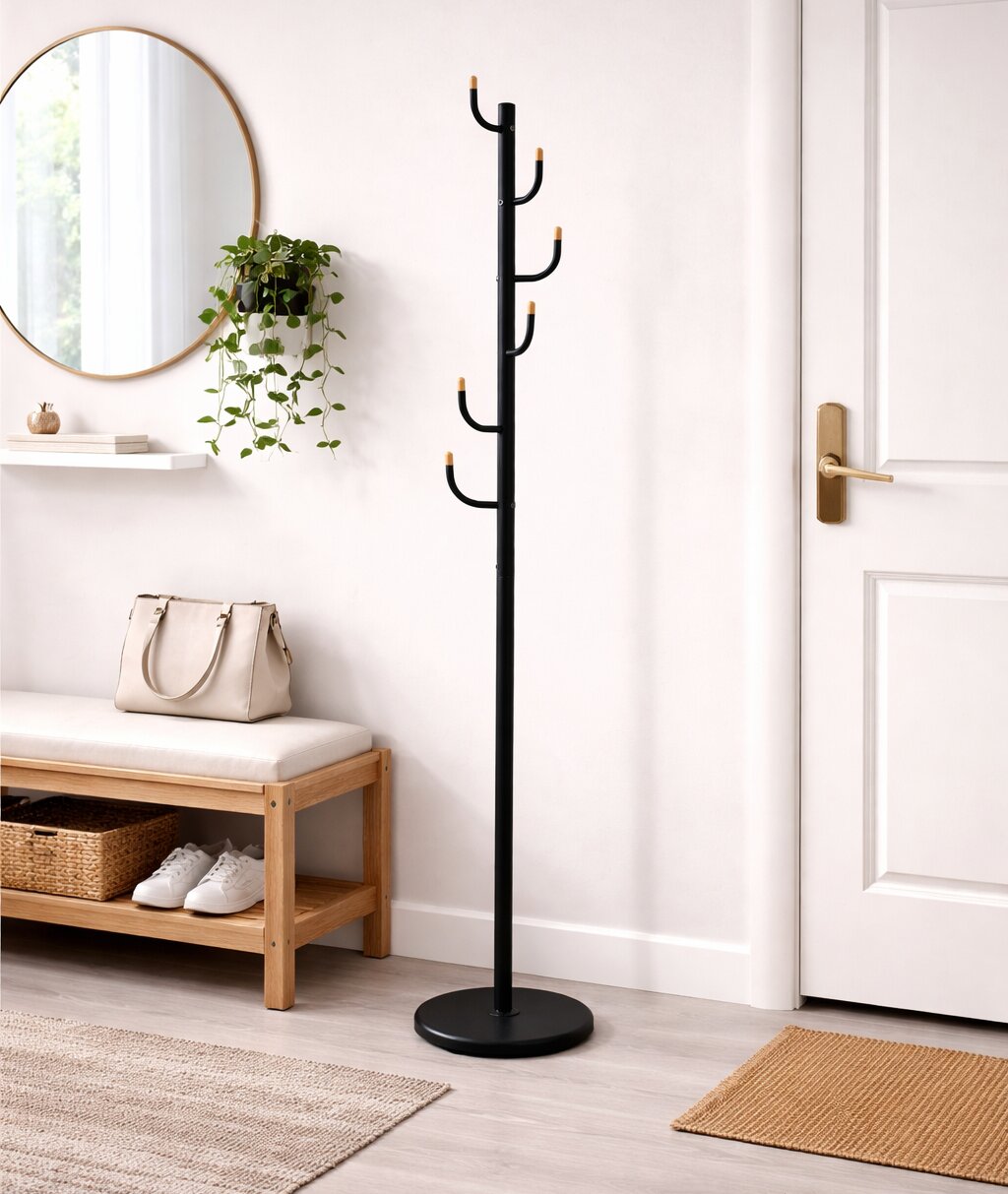 Vnesite red in eleganco v vaš prostor s tem sodobnim stojalom za oblačila, s praktičnim minimalističnim dizajnom ter različnimi barvnimi opcijami. Zaradi svoje vitke oblike in razporeditve kljuk je idealna rešitev za organizacijo oblačil v hodniku, pisarni ali spalnici.