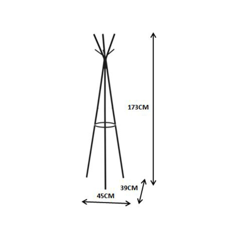 Modern obešalnik v črni barvi. Ogrodje je narejeno iz jekla in obdelano s prašnim lakiranjem. Maksimalna nosilnost obešalnika je 12 kg.