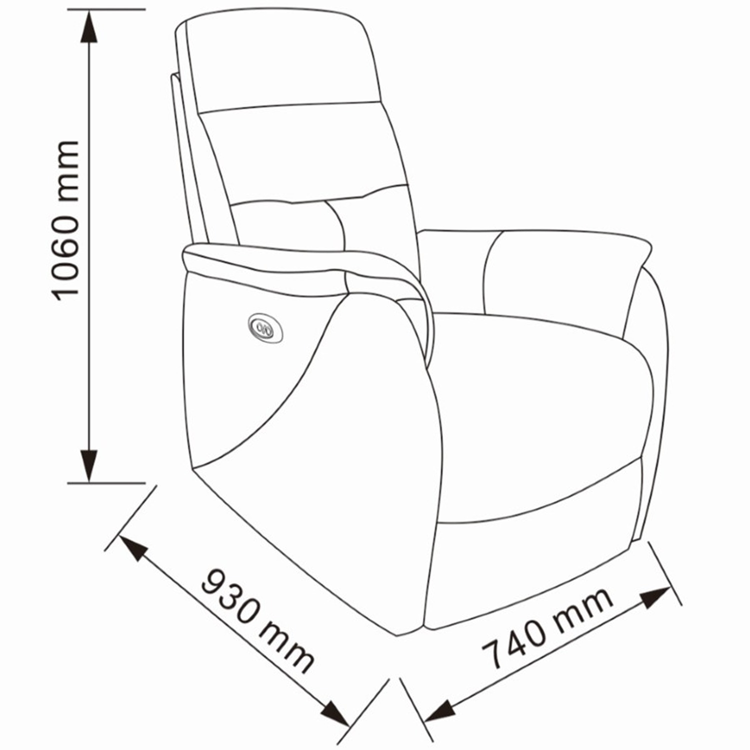 Sodoben počivalnik, na voljo v bež barvi. Celoten stol je debelo oblazinjen s kvalitetno tkanino. Počivalnik ima kovinski okvir in je opremljen z električnim relaks mehanizmom ki spusti naslonjalo za hrbet ter dvigne podlogo za noge. Maksimalna nosilnost je 120 kg.