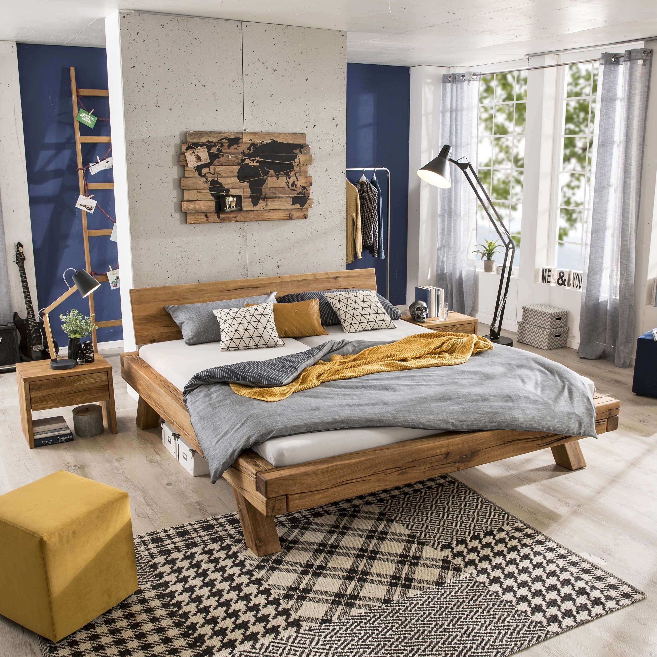 Postelja iz masivnega hrastovega lesa, na voljo v dveh različnih velikostih