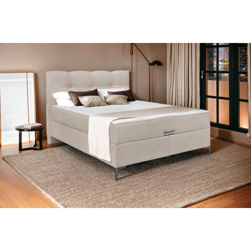 Kakovostno izdelan posteljni okvir zagotavlja stabilnost in dolgo življenjsko dobo, medtem ko oblazinjenje prispeva k prijetnemu in prefinjenemu videzu prostora. Postelja je postavljena na nogice, kar prostoru daje bolj zračen videz ter omogoča enostavno čiščenje tal pod posteljo.