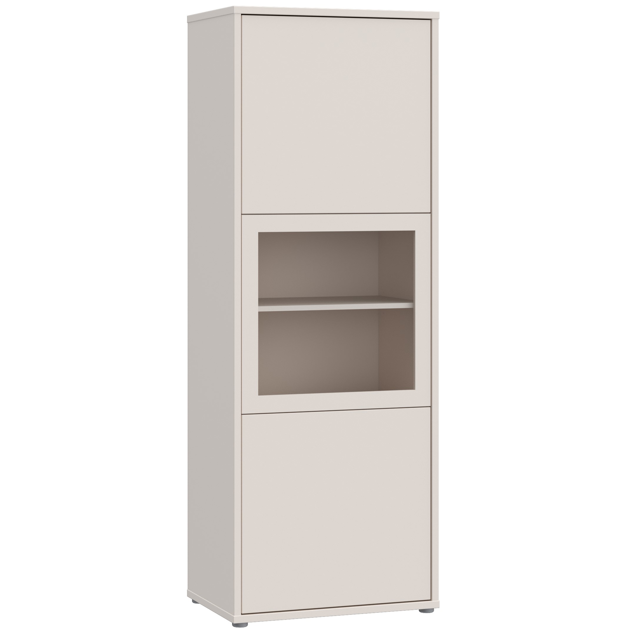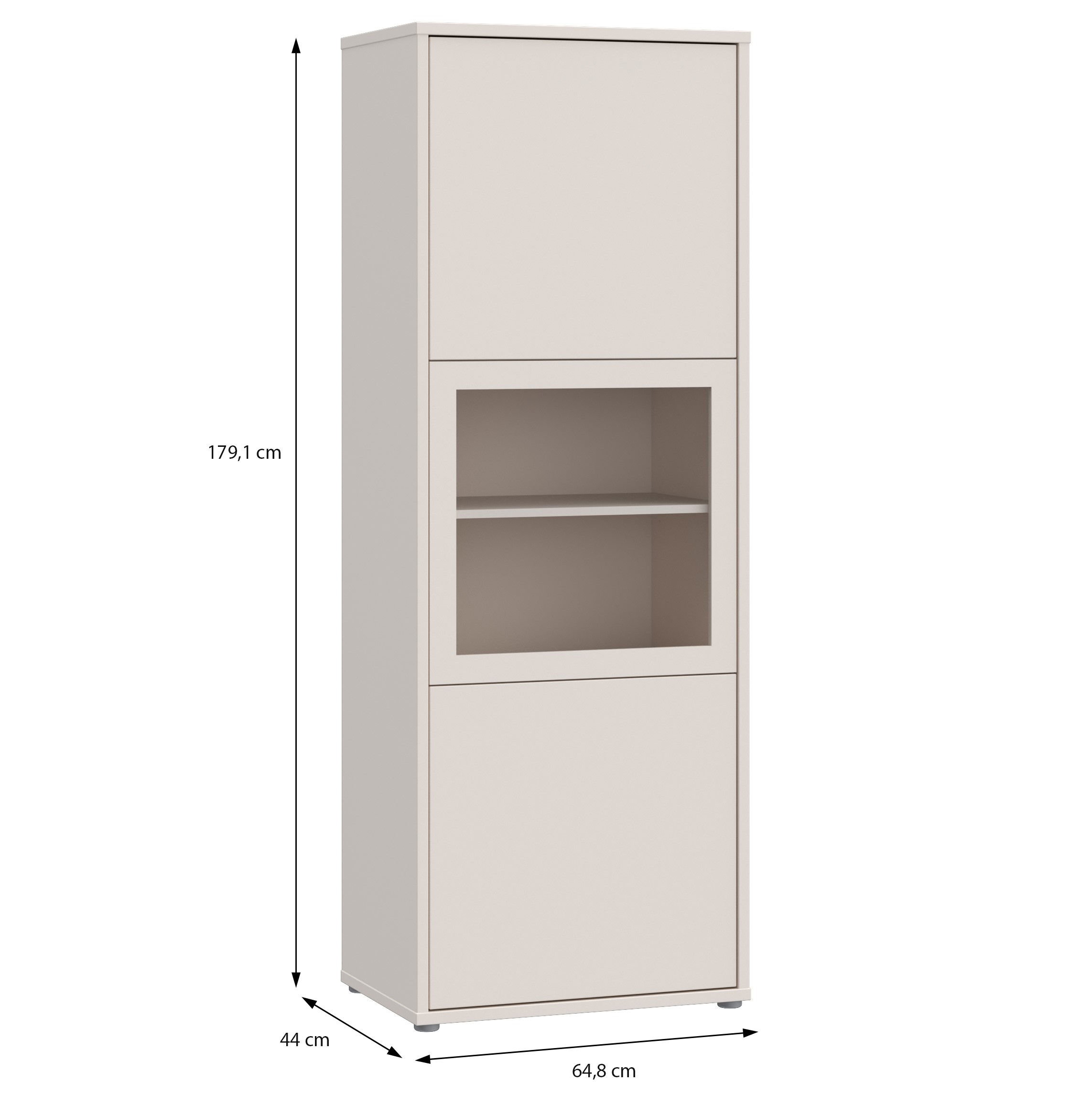 Visoka vitrina za vse situacije, ki potrebujejo prostorsko učinkovito shranjevanje z razgledom. Na voljo v bež ali v terakota barvi, združuje funkcionalnost s sodobno estetiko, ki se dobro vključi v vsak sodoben prostor.