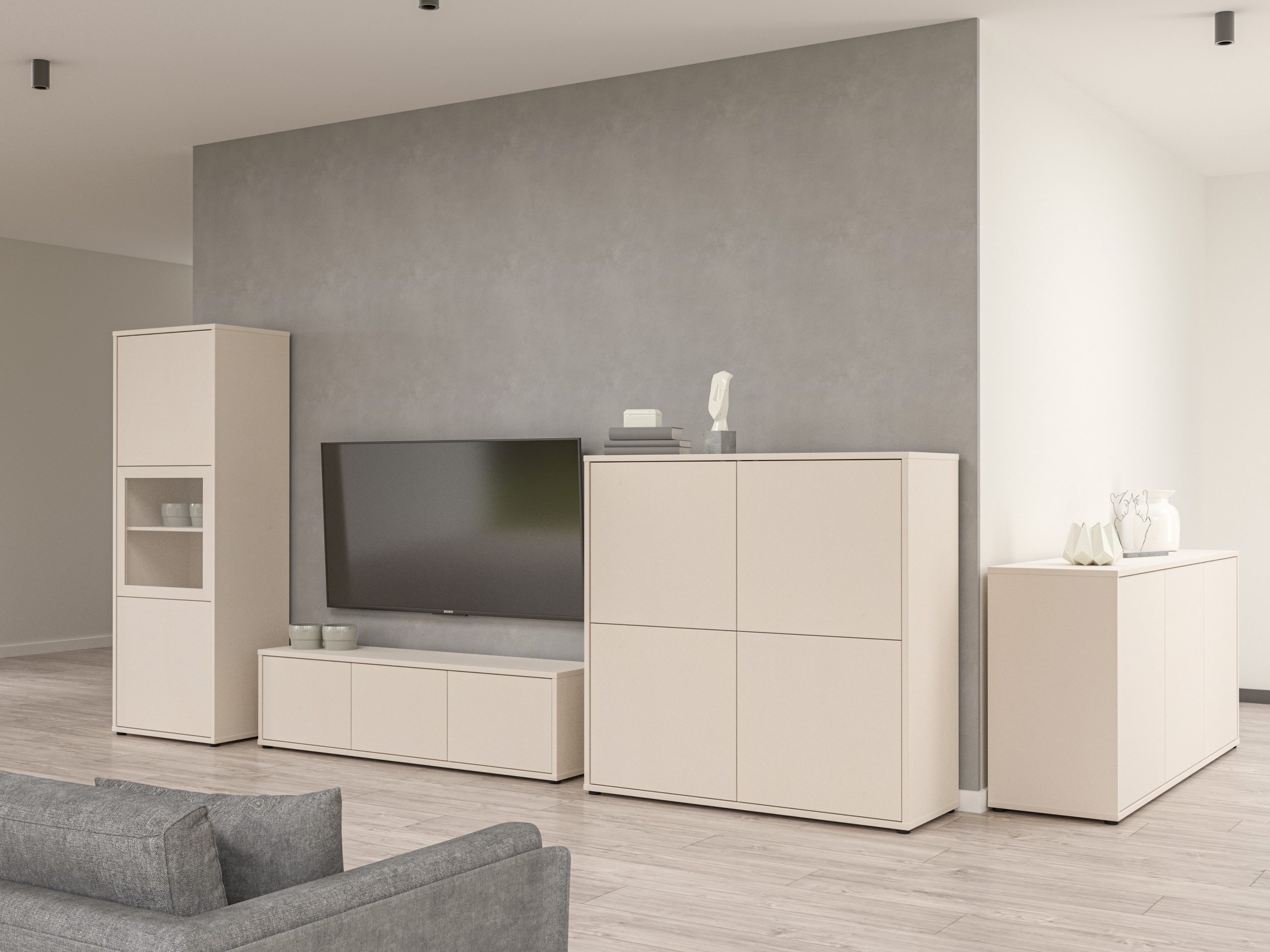 Zaradi čistih linij, minimalističnega dizajna in premišljene kombinacije zaprtih in vidnih možnosti shranjevanja je ta vitrina tako vsestranski dodatek tako za stanovanjske kot za poslovne prostore.