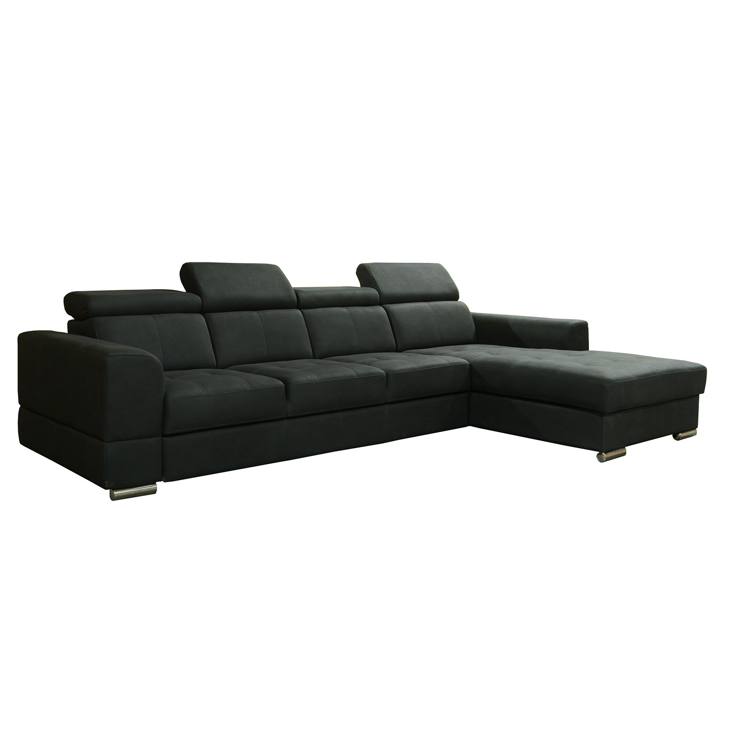 Moderna sedežna garnitura v obliki črke L se bo odlično podala v vašo dnevno sobo in popestrila vaš dom. Na obeh straneh je opremljena z nizkima naslonoma za roke, na eni strani pa ima tudi prostorno skrinjo, ki vam ponuja velik prostor za shranjevanje različnh stvari. Opremljena je s funkcijo izvlečnega ležišča, z velikostjo 250×120 cm. Pomožno ležišče je namenjeno občasni uporabi. Sedišče je opremljeno s peno in valovitimi vzmetmi. Sedežna garnitura stoji na svetlečih nožicah, visokih 6 cm. Štirje nasloni za glavo so prilagodljivi, kar pomeni, da jih lahko po volji nastavljate v ležeč ali pokončen položaj. Izbirate lahko med levo in desno postavitvijo.