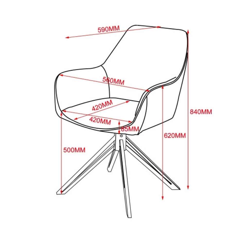 Sodoben jedilniški stol je na voljo v sivi barvi ali v bež barni varijanti in je debelo oblazinjen z mehko tkanino. Sedišče stola je 42 cm globoko in 42 cm široko, napolnjeno s peno in se nahaja na višini 50 cm od tal  Podnožje je narejeno iz kovinskih cevi v črni mat barvi. Vrtilna plošča v podnožju omogoča da se lahko sedež zavrti za 180°. Maksimalna nosilnost stola je 120 kg.