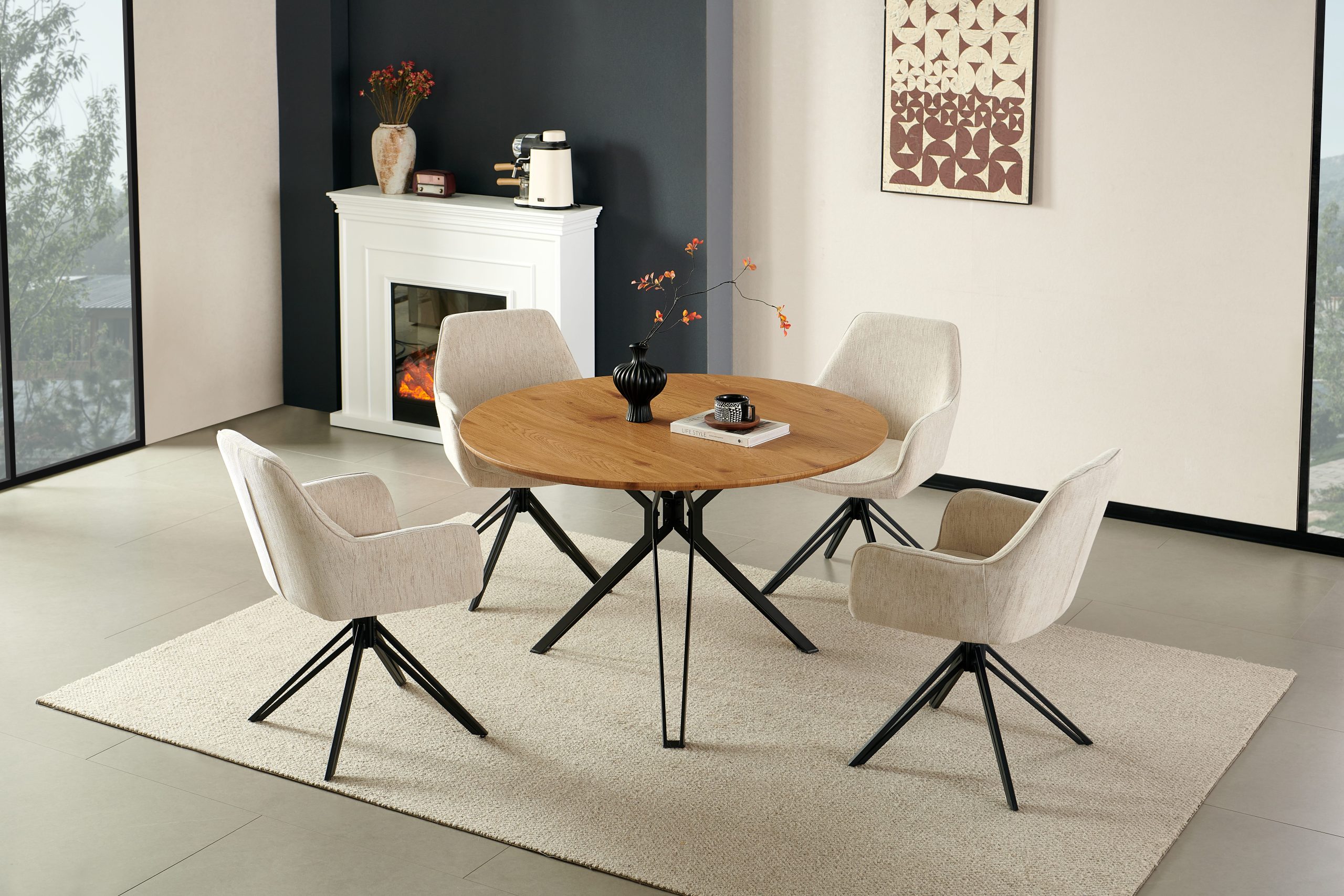 Vrtljiv jedilniški stol, na voljo v sivi ali v bež barvi.