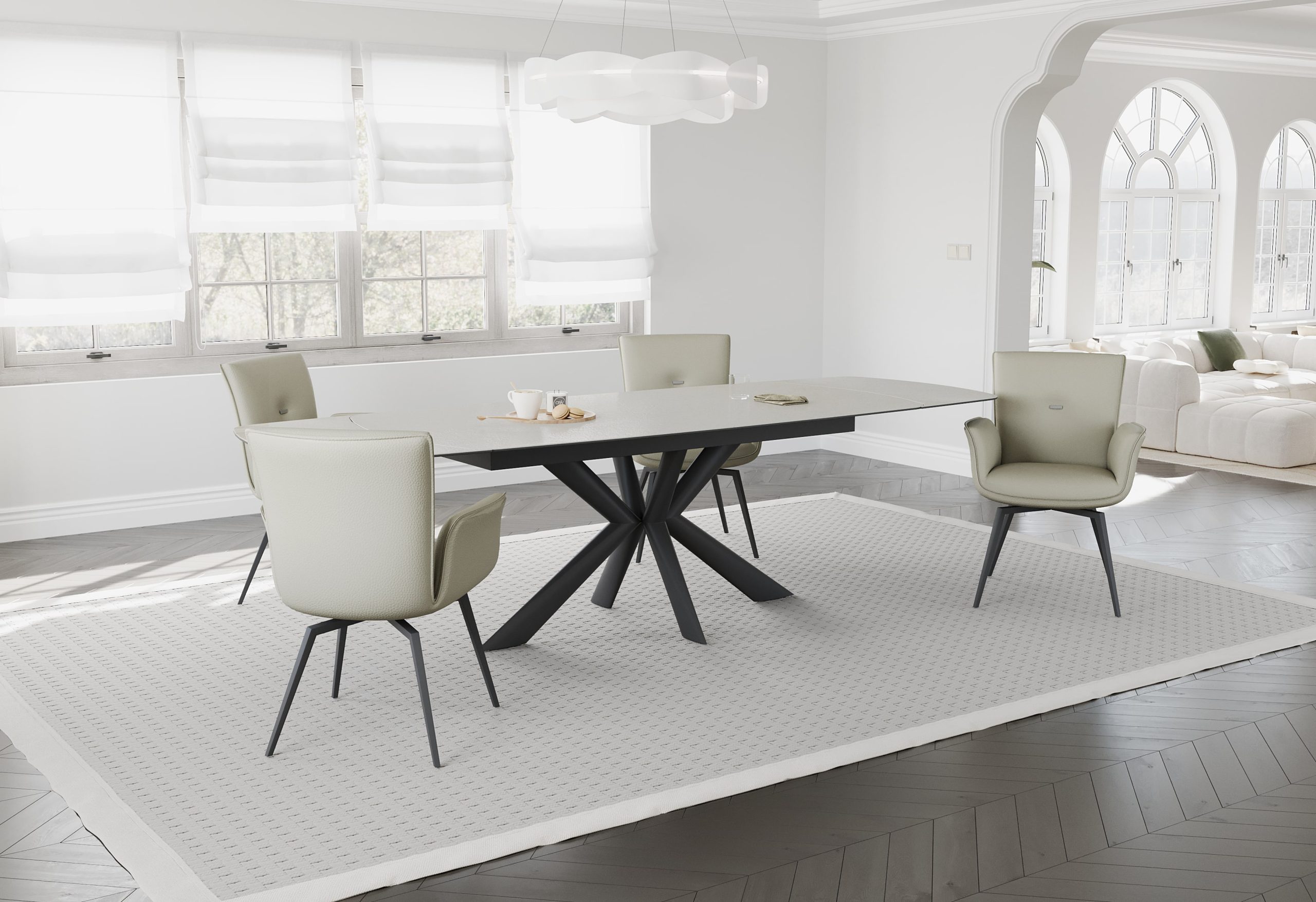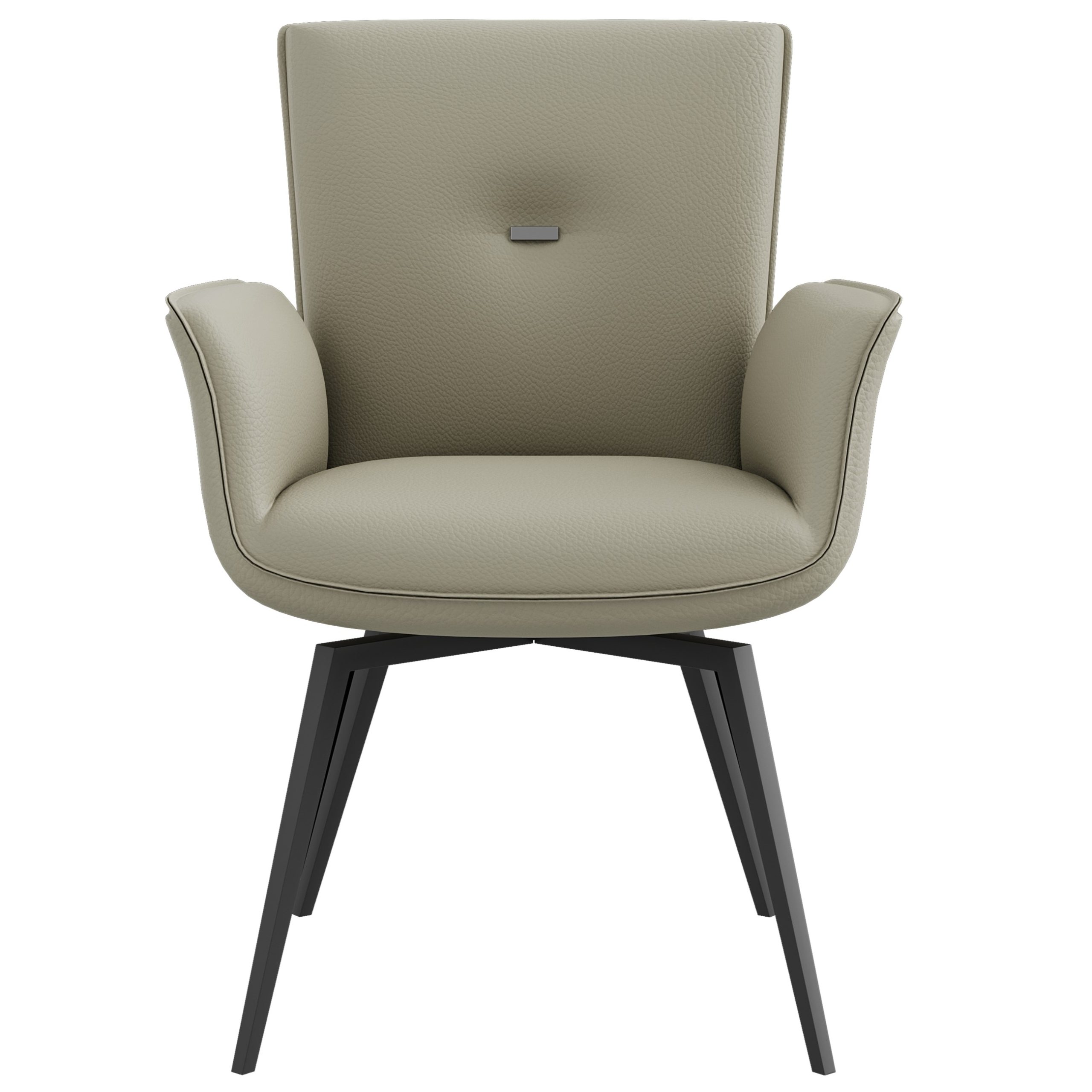 Njegova kompaktna velikost omogoča učinkovito izrabo prostora, kombinacija nevtralnega svetlo sivega oblazinjenja in črnega podnožja pa omogoča enostavno usklajevanje s široko paleto stilov miz in notranjih dizajnov ter predstavlja vsestransko izbiro za moderne notranjosti.