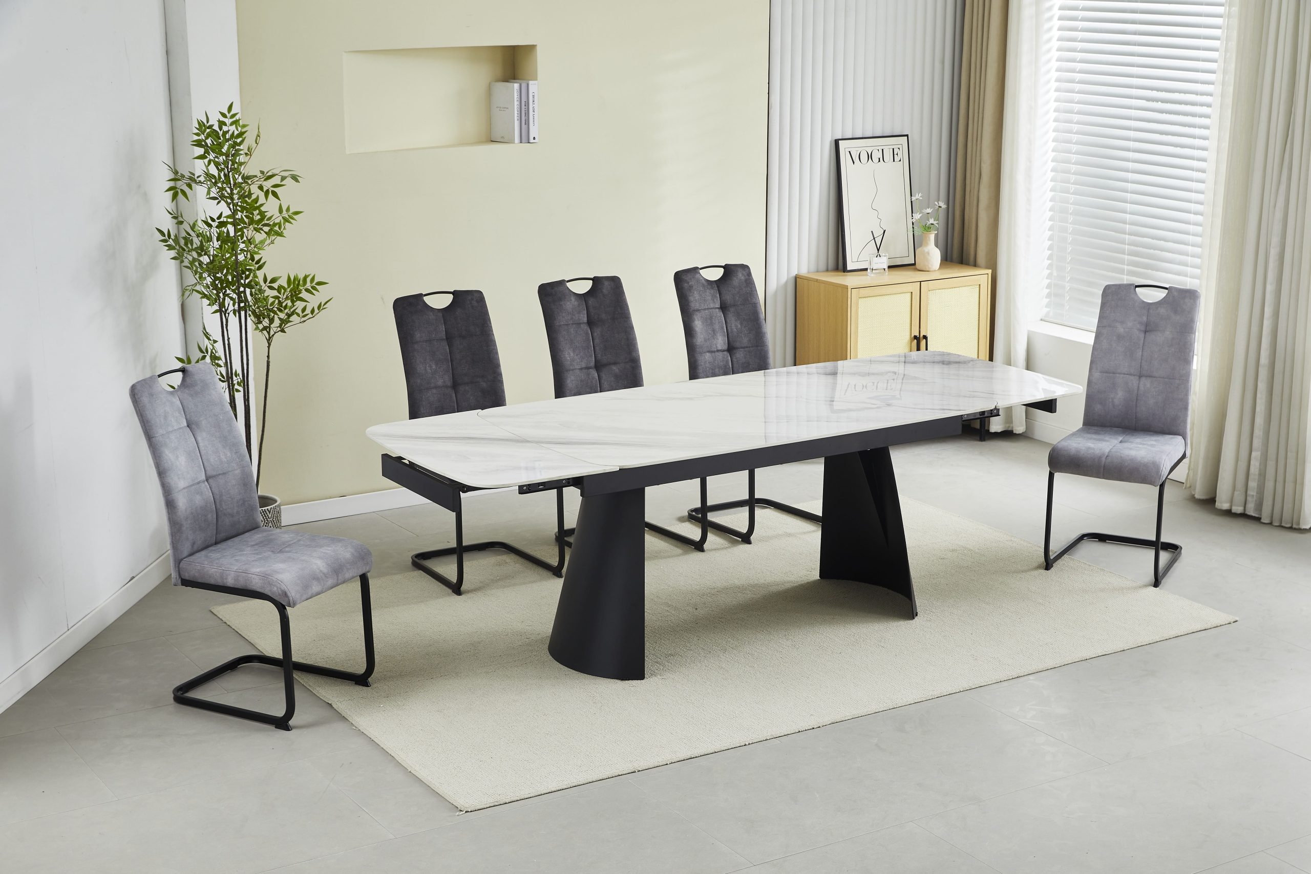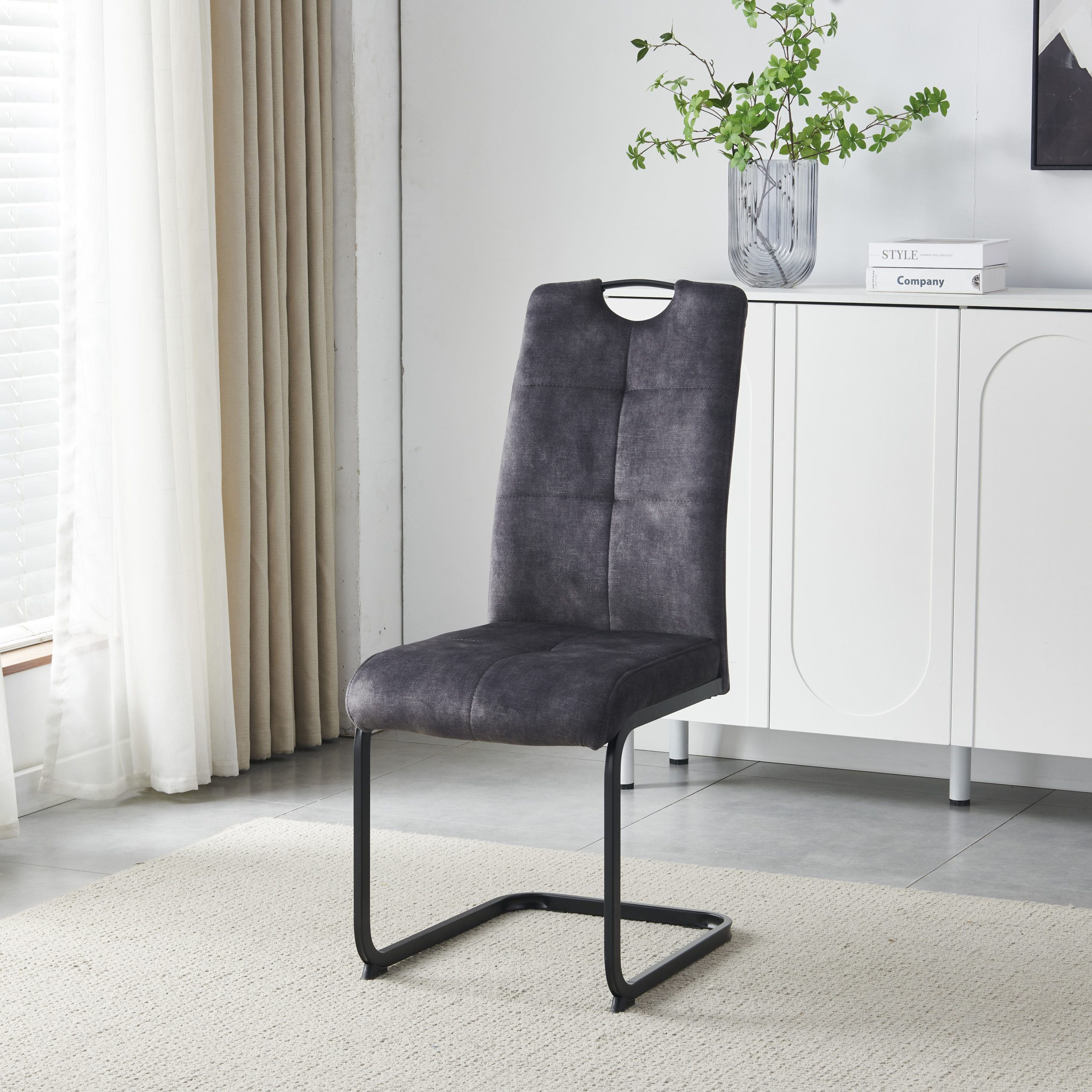 Sodoben jedilniški stol, s podnožjem v obliki sank ter na voljo v več barvnih varijantah. Stol je po sedišču in hrbtišču prešit z okrasnimi šivi ki popestrijo videz stola. Naslon za hrbet pa je na vrhu tudi opremljen z ročajem za preprosto premikanje stola. Podnožje stola je narejeno iz kovine, prašno lakirane s črno barvo za boljšo zaščito pred okoljem.
