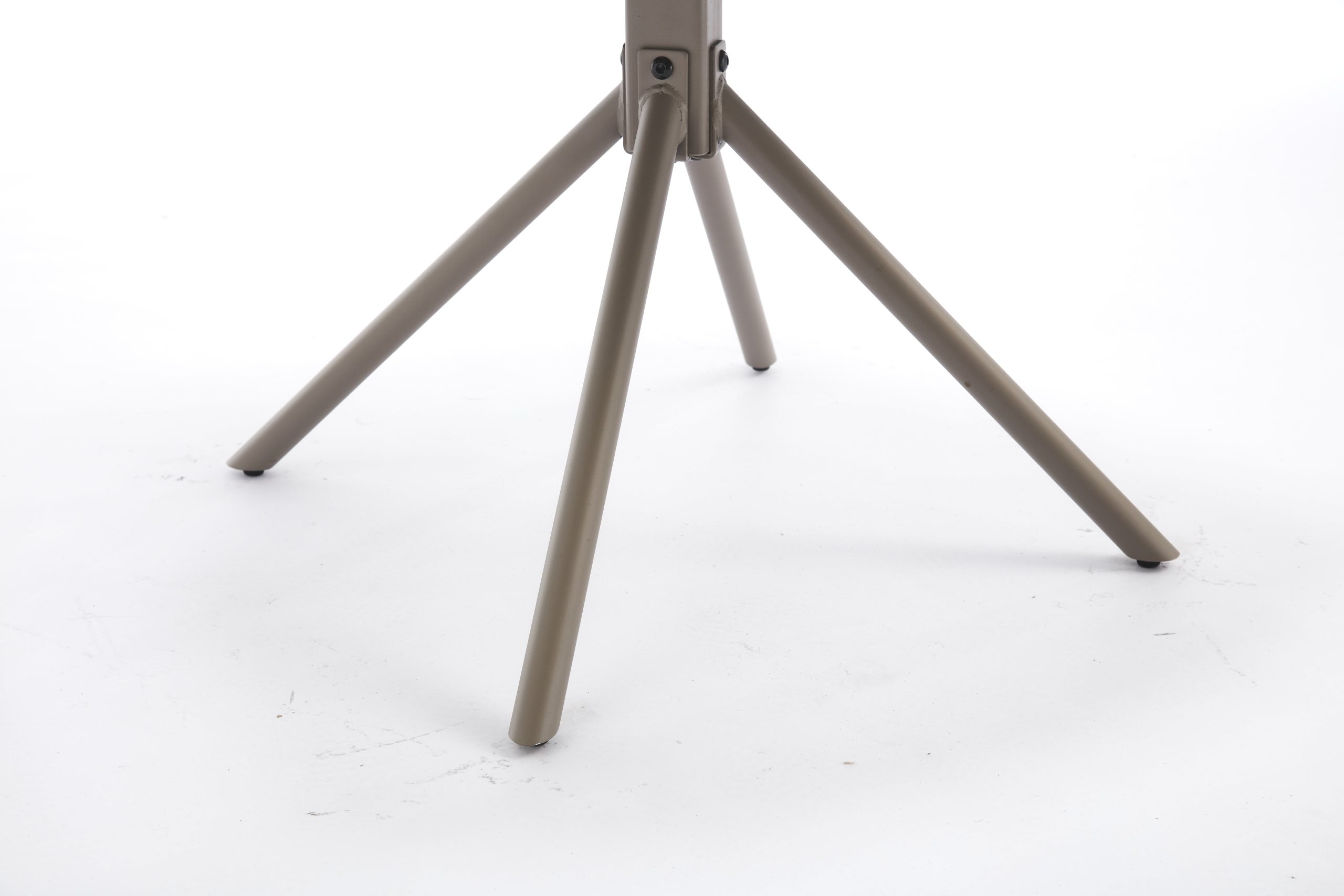 Stol stoji na robustnem kovinskem podnožju ki zagotavlja dobro stabilnost in podporo. Okvir s sivim praškastim premazom za boljšo odpornost proti obrabi, praskam in koroziji. Ta robustna konstrukcija zagotavlja, da stol ostaja zanesljiva sedežna rešitev za vsakodnevno uporabo, hkrati pa izžareva eleganten in poliran videz.